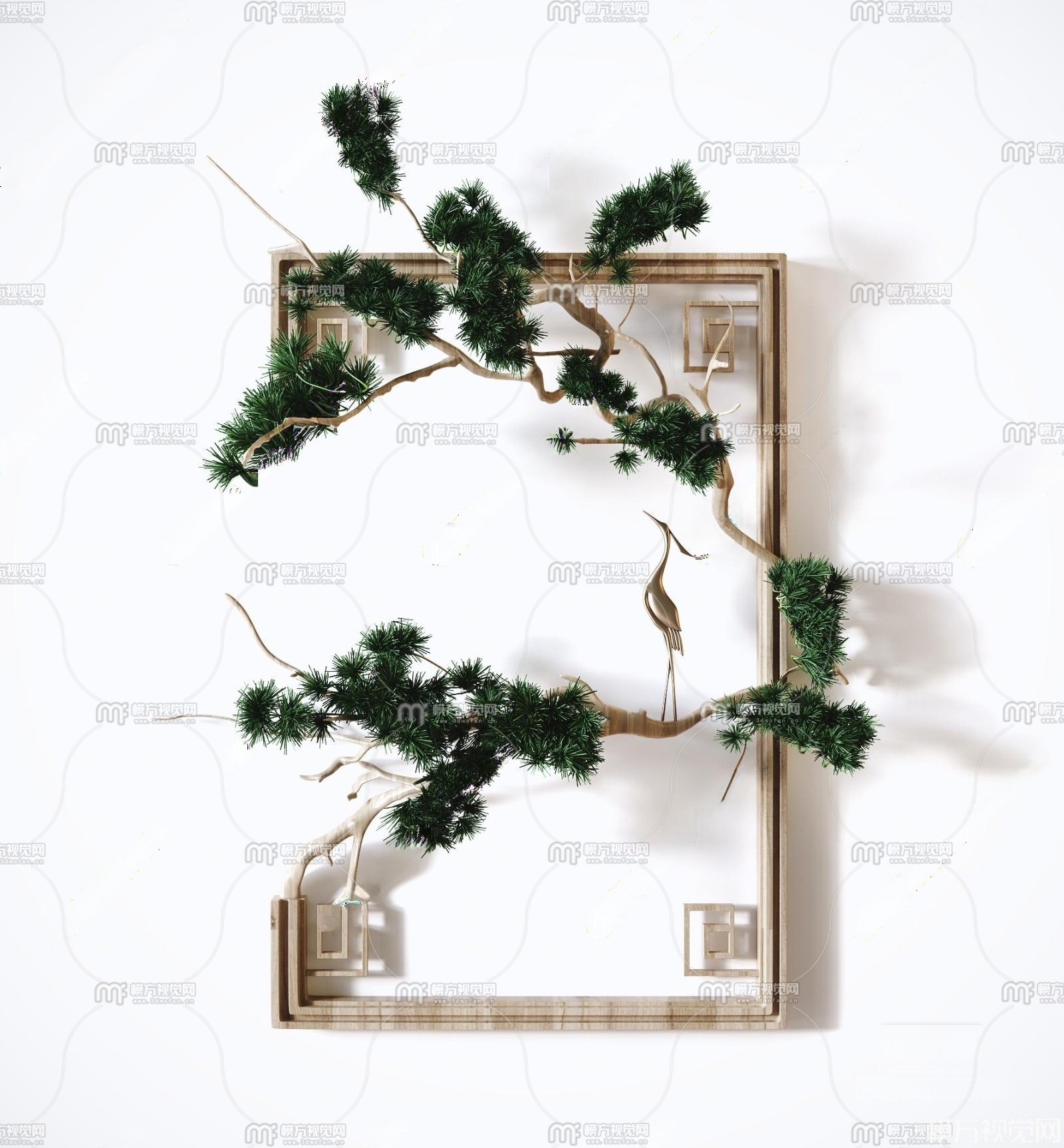新中式禅意松柏墙饰3D模型(ID:0038212)