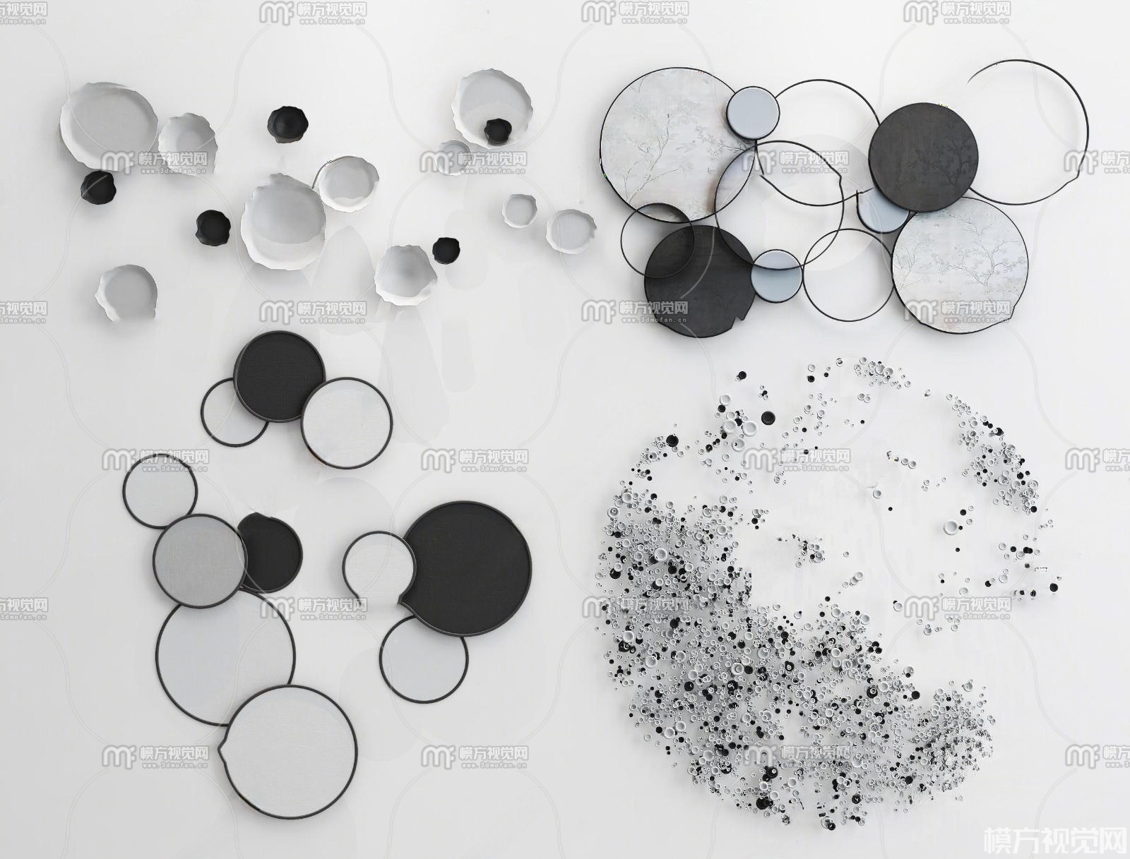新中式金属墙饰挂件组合3D模型(ID:0038214)