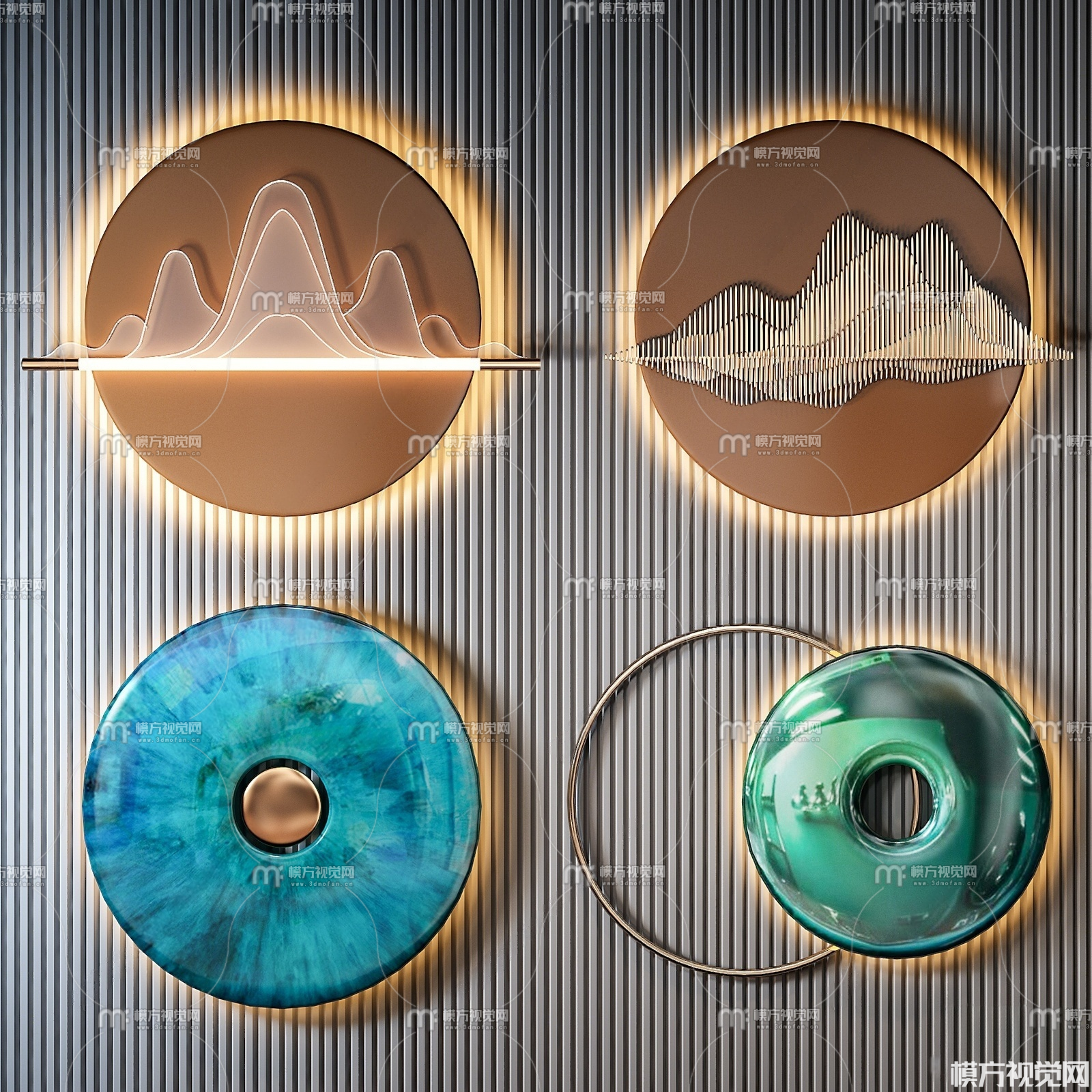 新中式墙饰挂饰组合3D模型(ID:0038228)