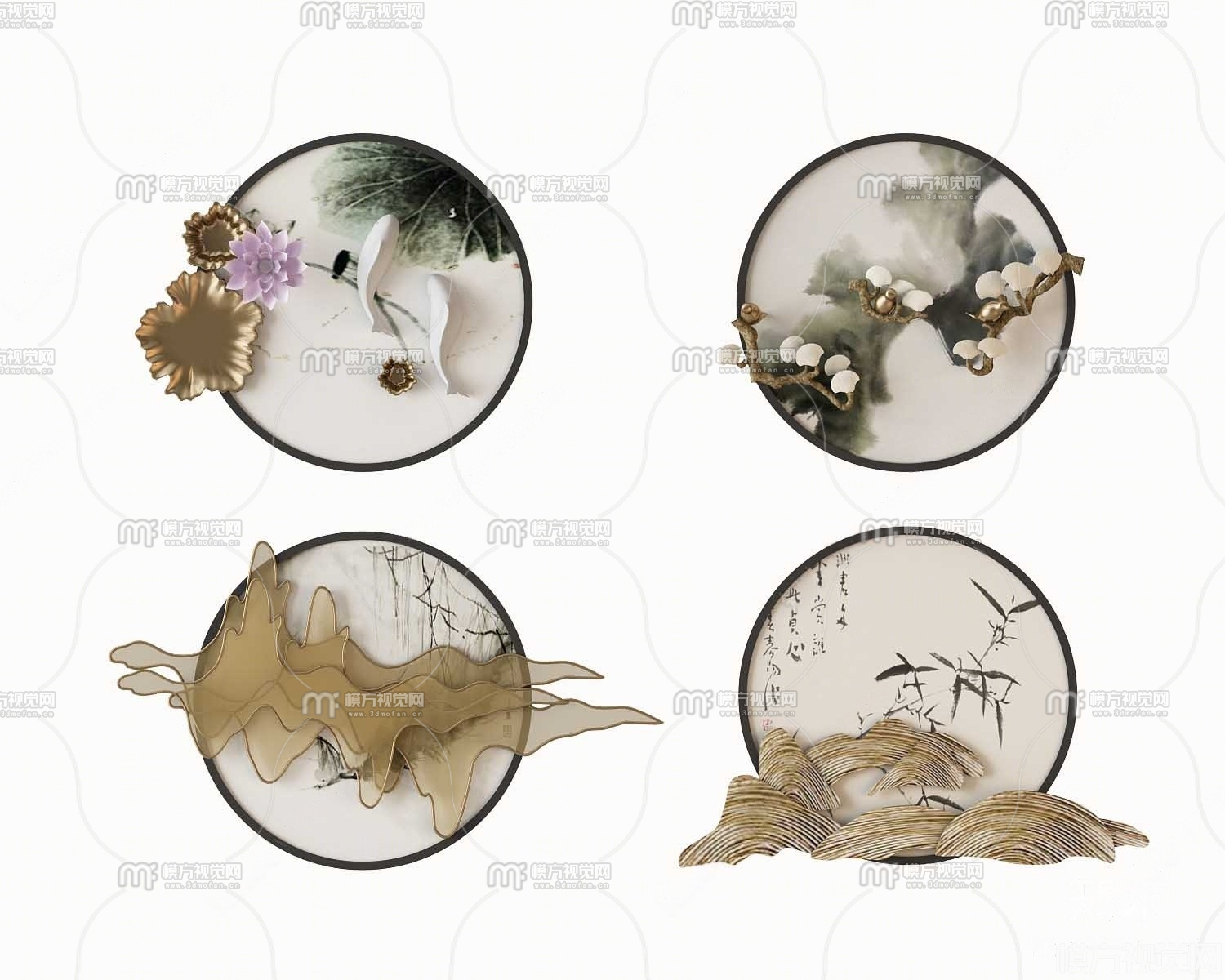 新中式墙饰挂饰组合3D模型(ID:0038229)