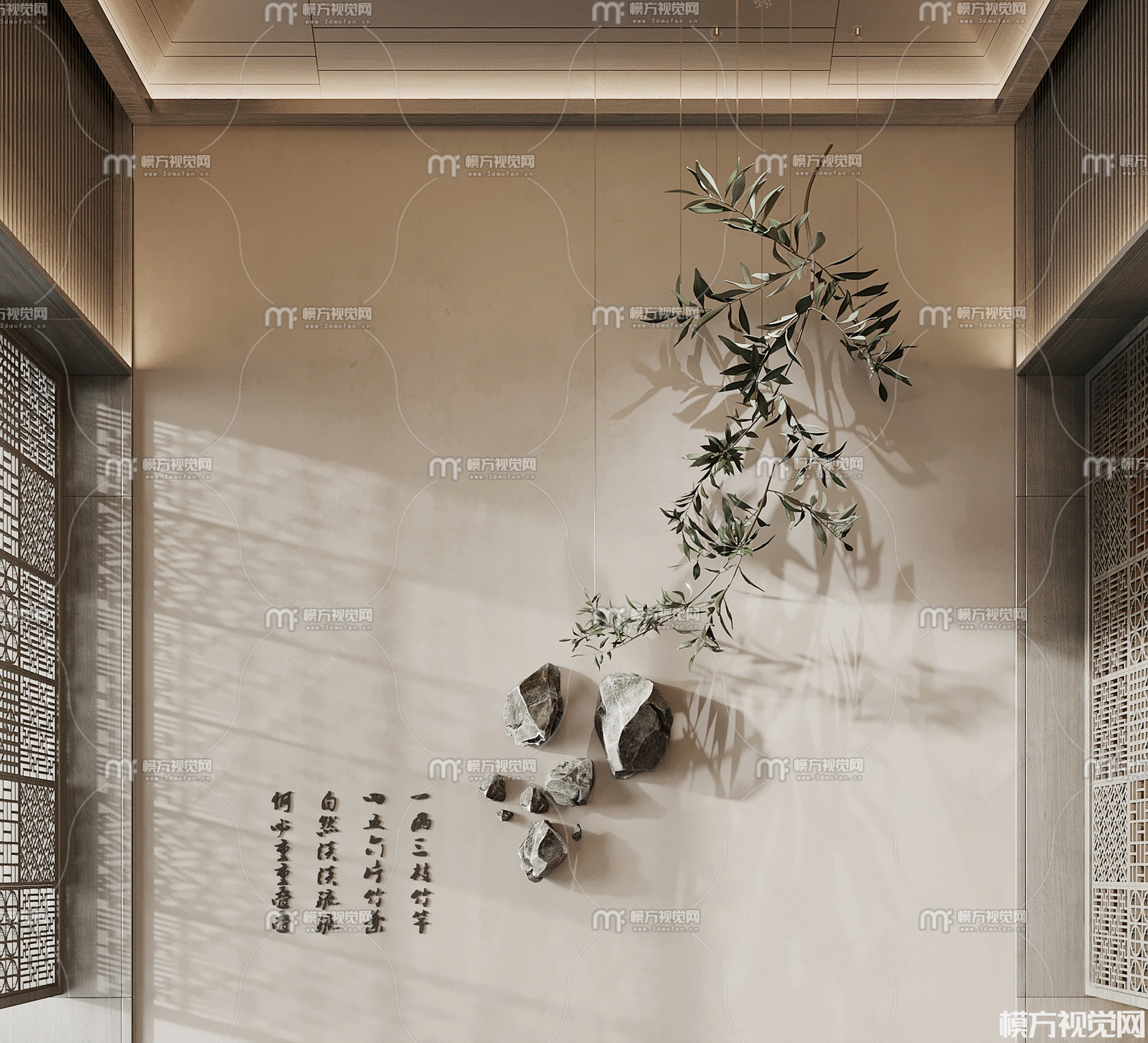新中式墙饰挂饰组合3D模型(ID:0038232)