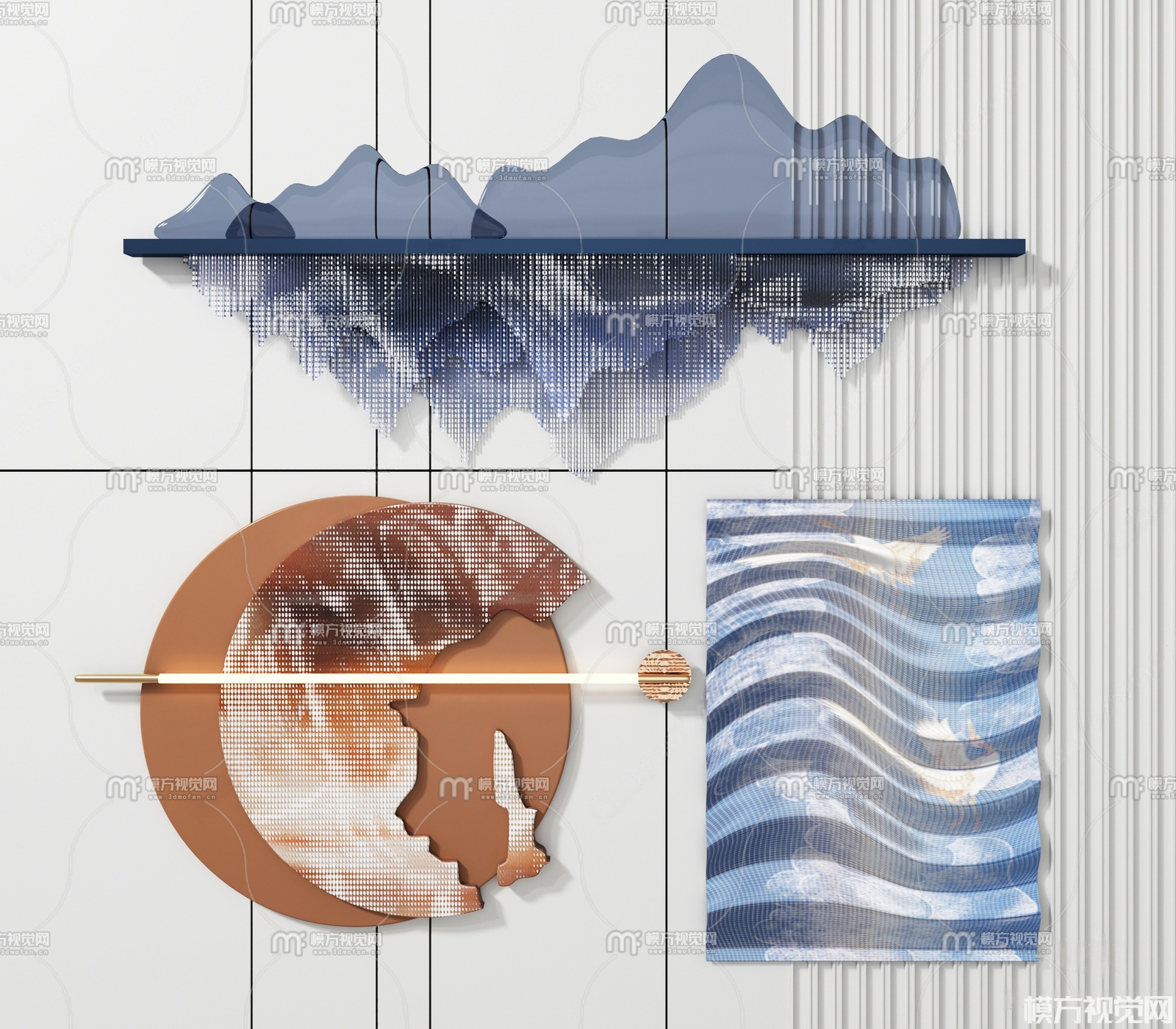 新中式墙饰挂饰组合3D模型(ID:0038233)