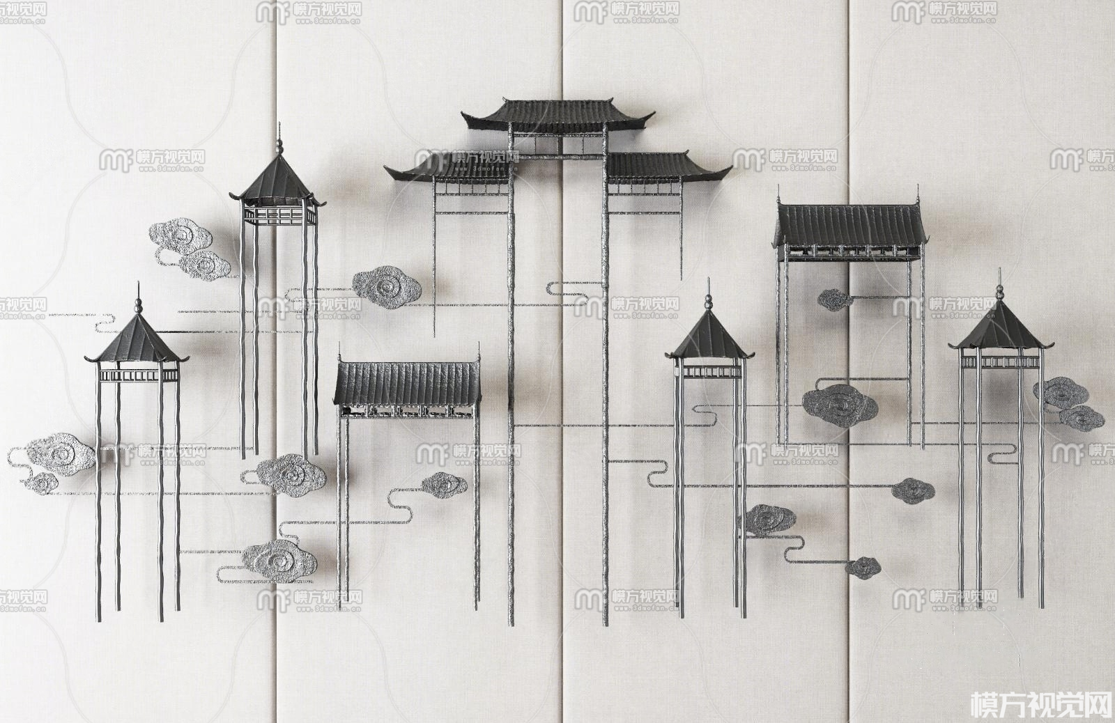 新中式祥云铁艺墙饰3D模型(ID:0038241)