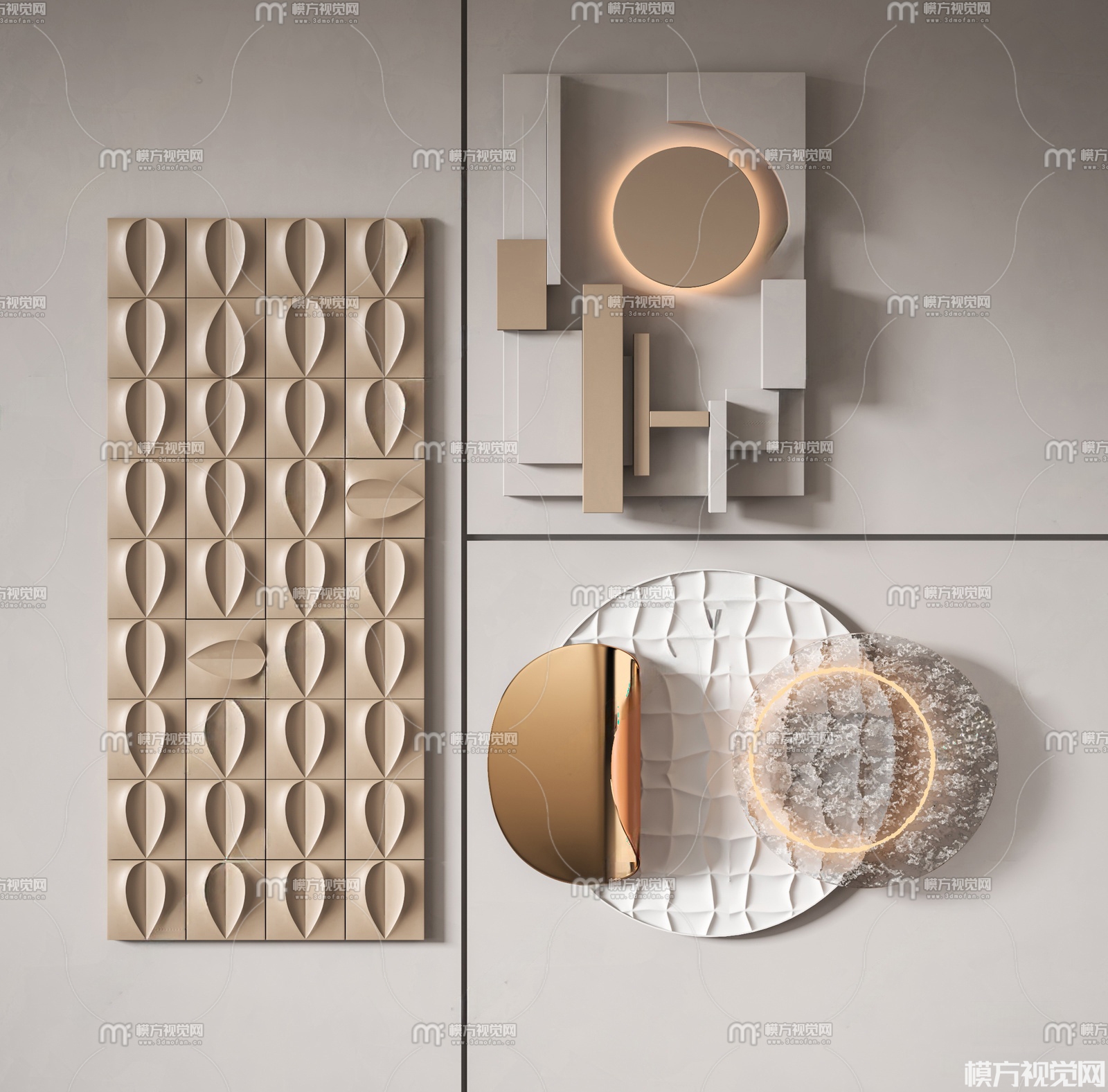 现代立体墙饰组合3D模型(ID:0038256)