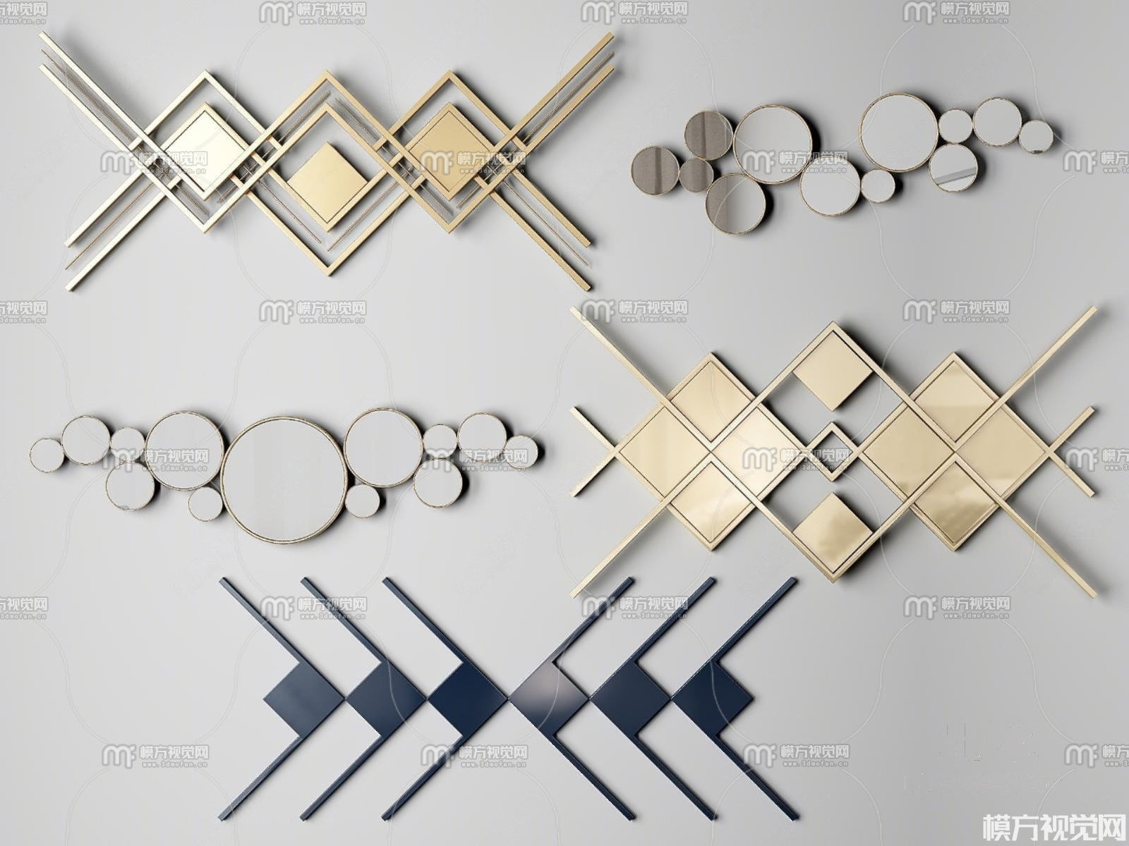 现代轻奢墙饰挂件组合3D模型(ID:0038311)