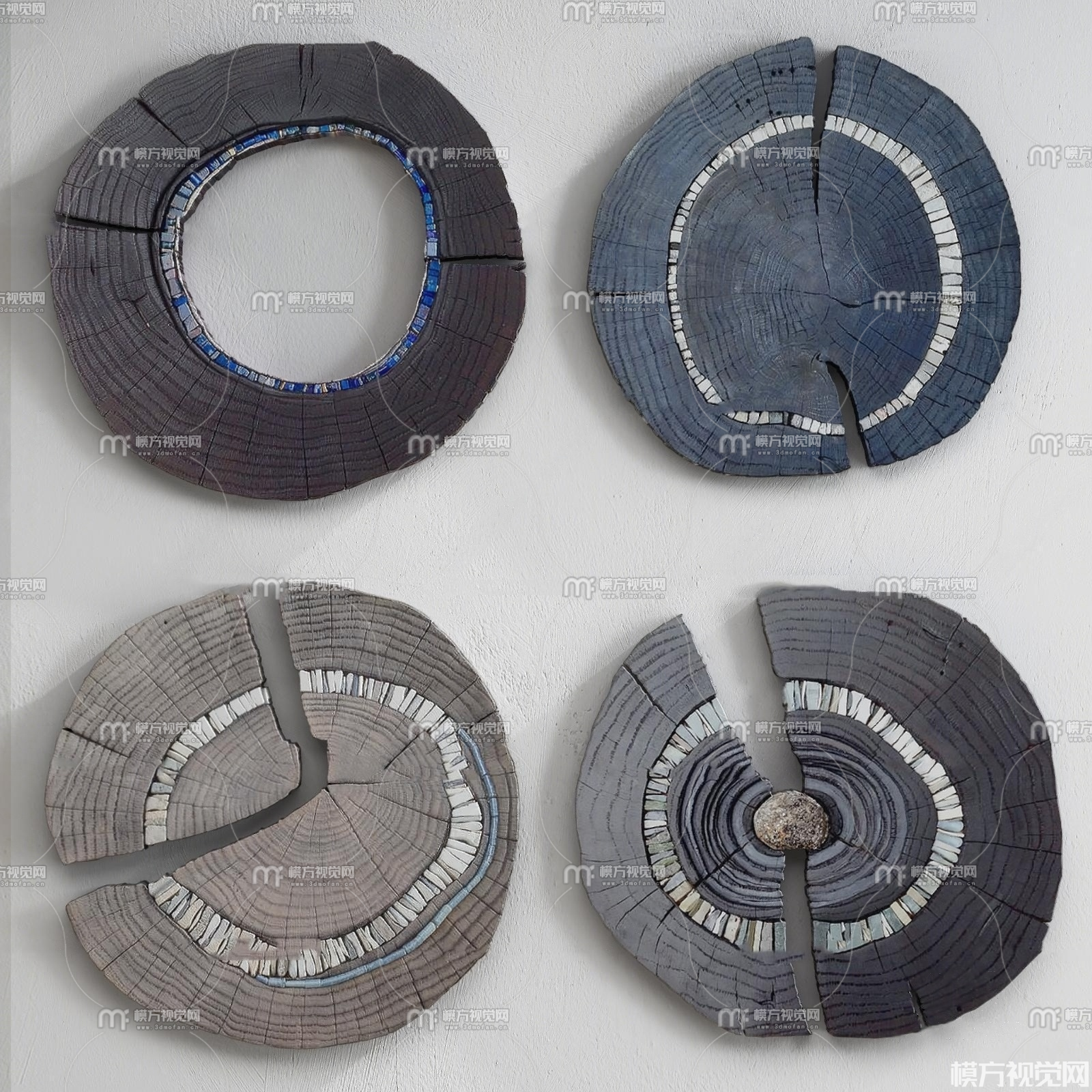 代艺术木头墙饰挂件组合3D模型(ID:0038316)