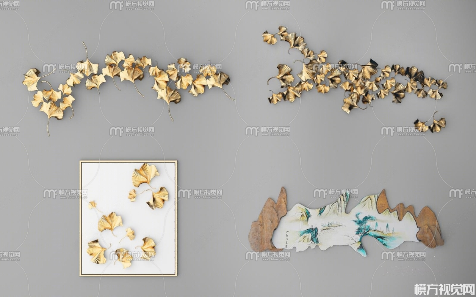 现代银杏叶树叶墙饰挂件3D模型(ID:0038317)