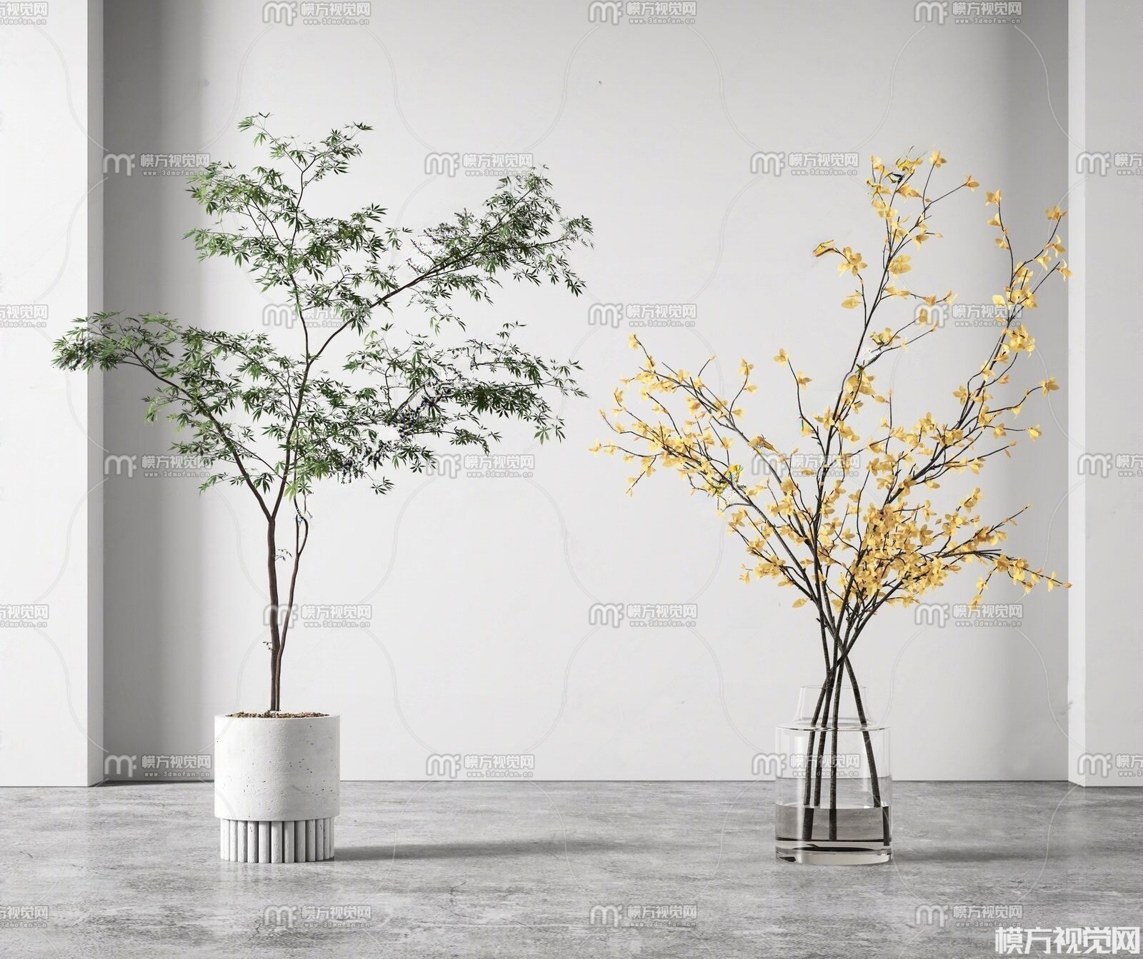 现代绿植盆栽3D模型(ID:0038354)