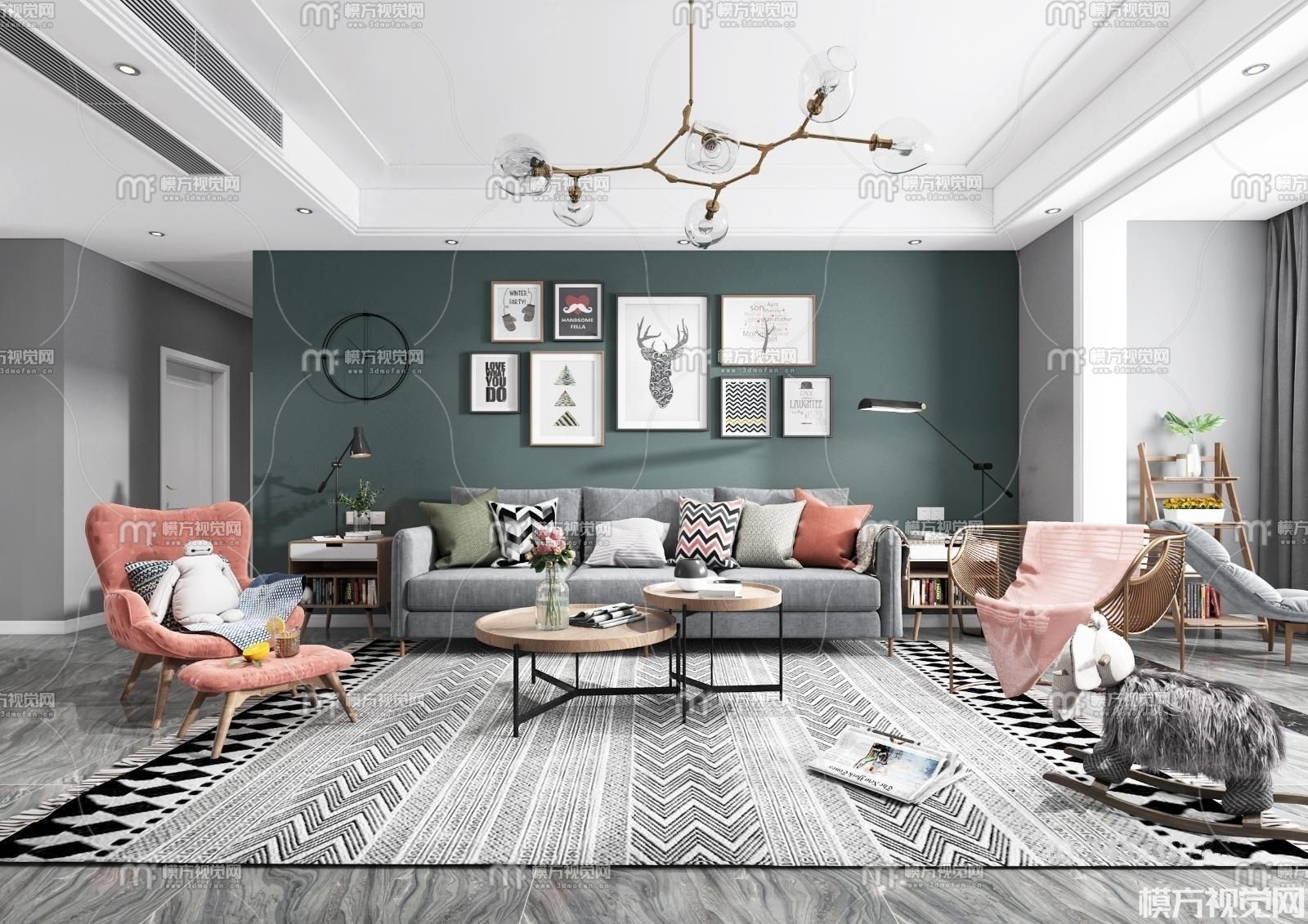 北欧客厅3D模型(ID:0003837)