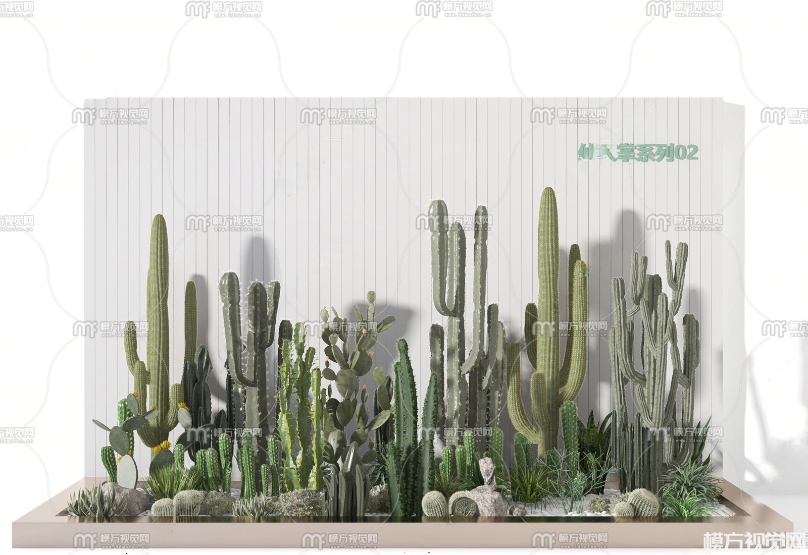 现代仙人掌绿植堆3D模型(ID:0038373)