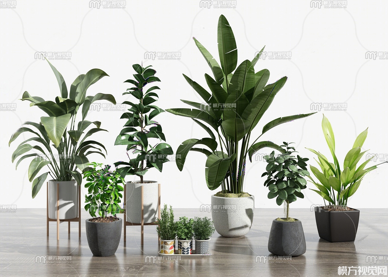 现代绿植盆栽组合3D模型(ID:0038381)