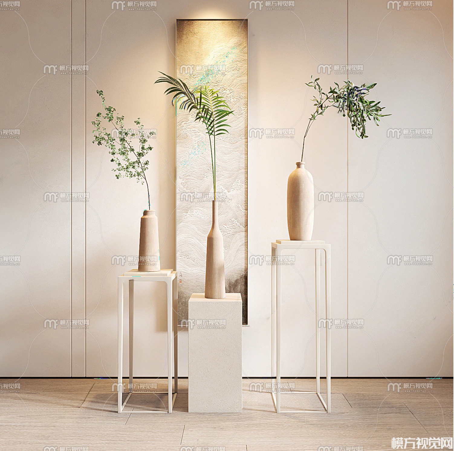 现代绿植盆栽盆景组合3D模型(ID:0038388)