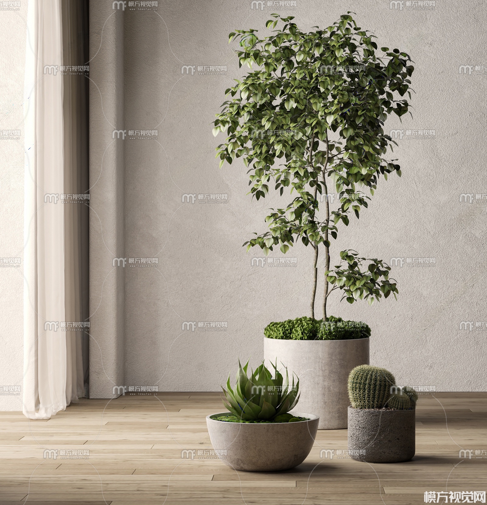 现代绿植盆栽盆景组合3D模型(ID:0038389)