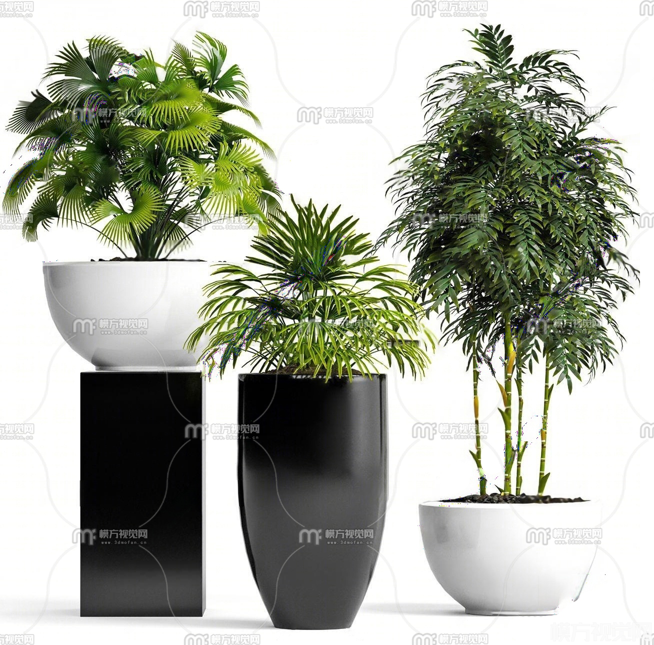 现代绿植盆栽盆景组合3D模型(ID:0038398)