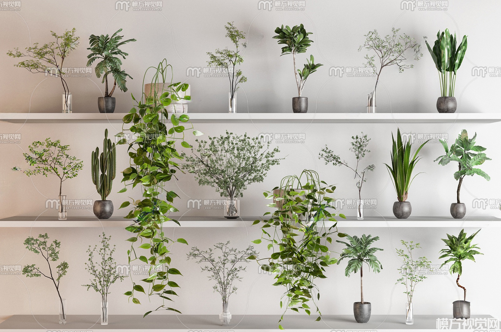 植物盆栽组合3D模型(ID:0038451)
