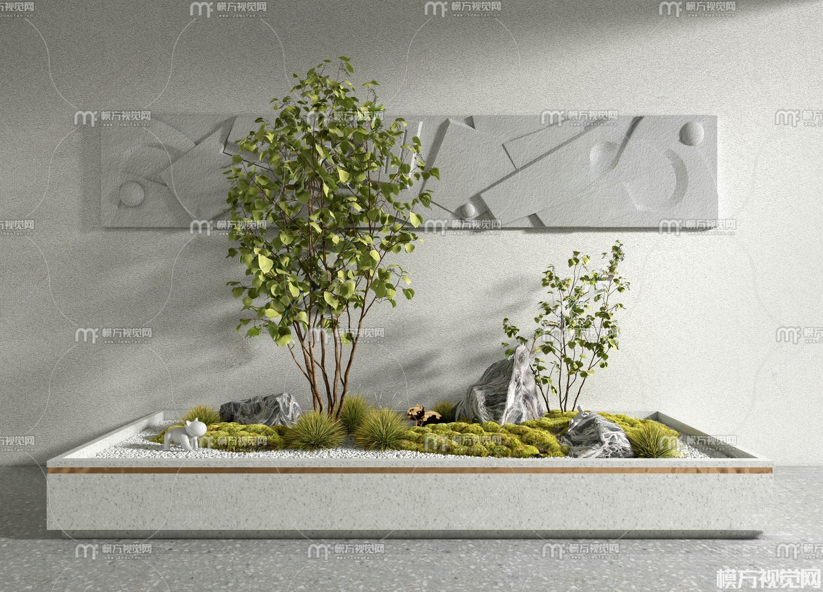 现代苔藓盆栽造景3D模型(ID:0038486)