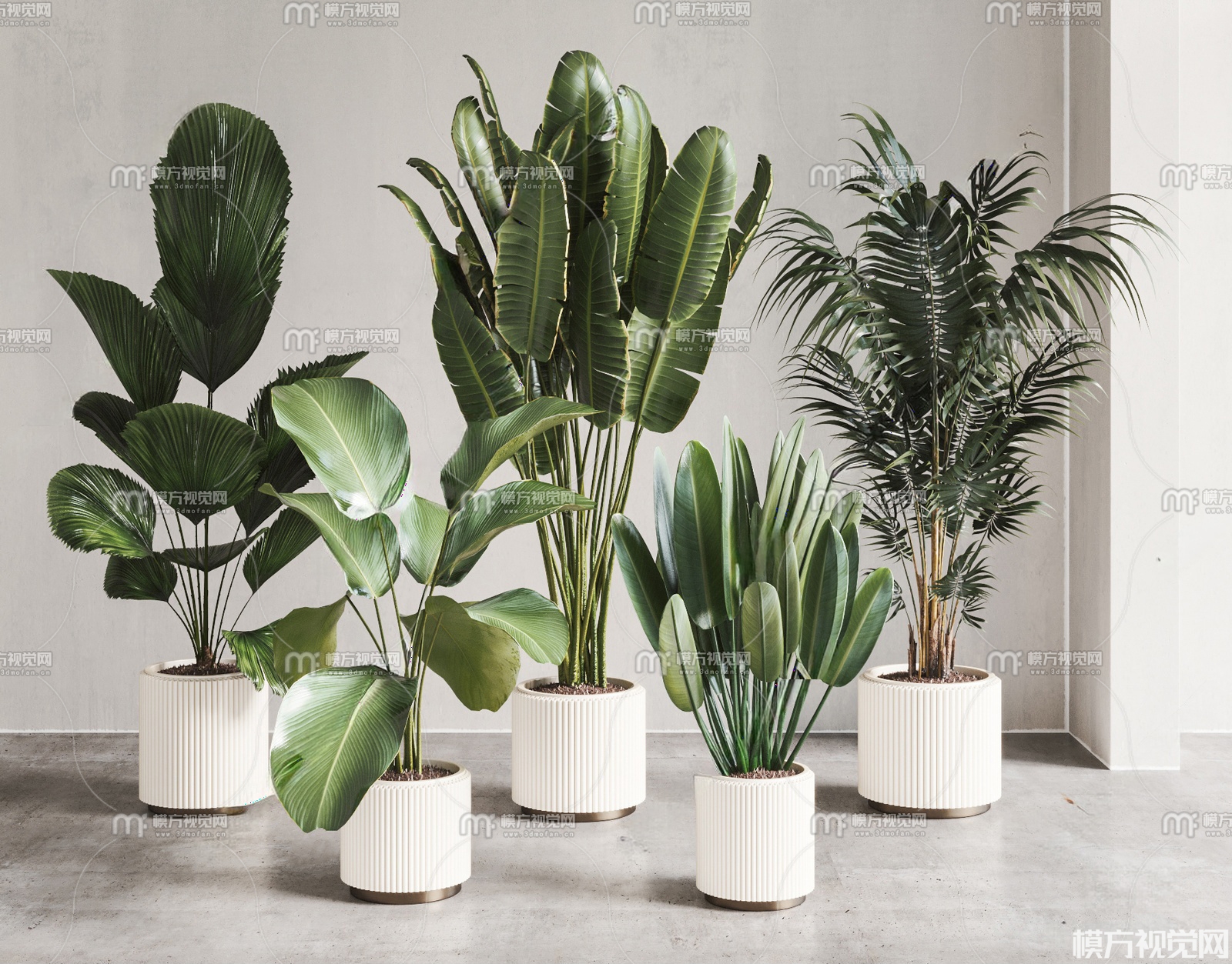 现代植物盆栽组合3D模型(ID:0038511)