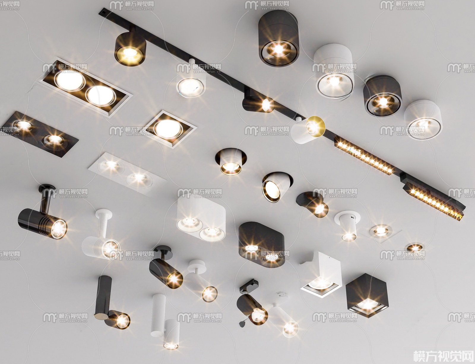 现代筒灯射灯组合3D模型(ID:0038574)