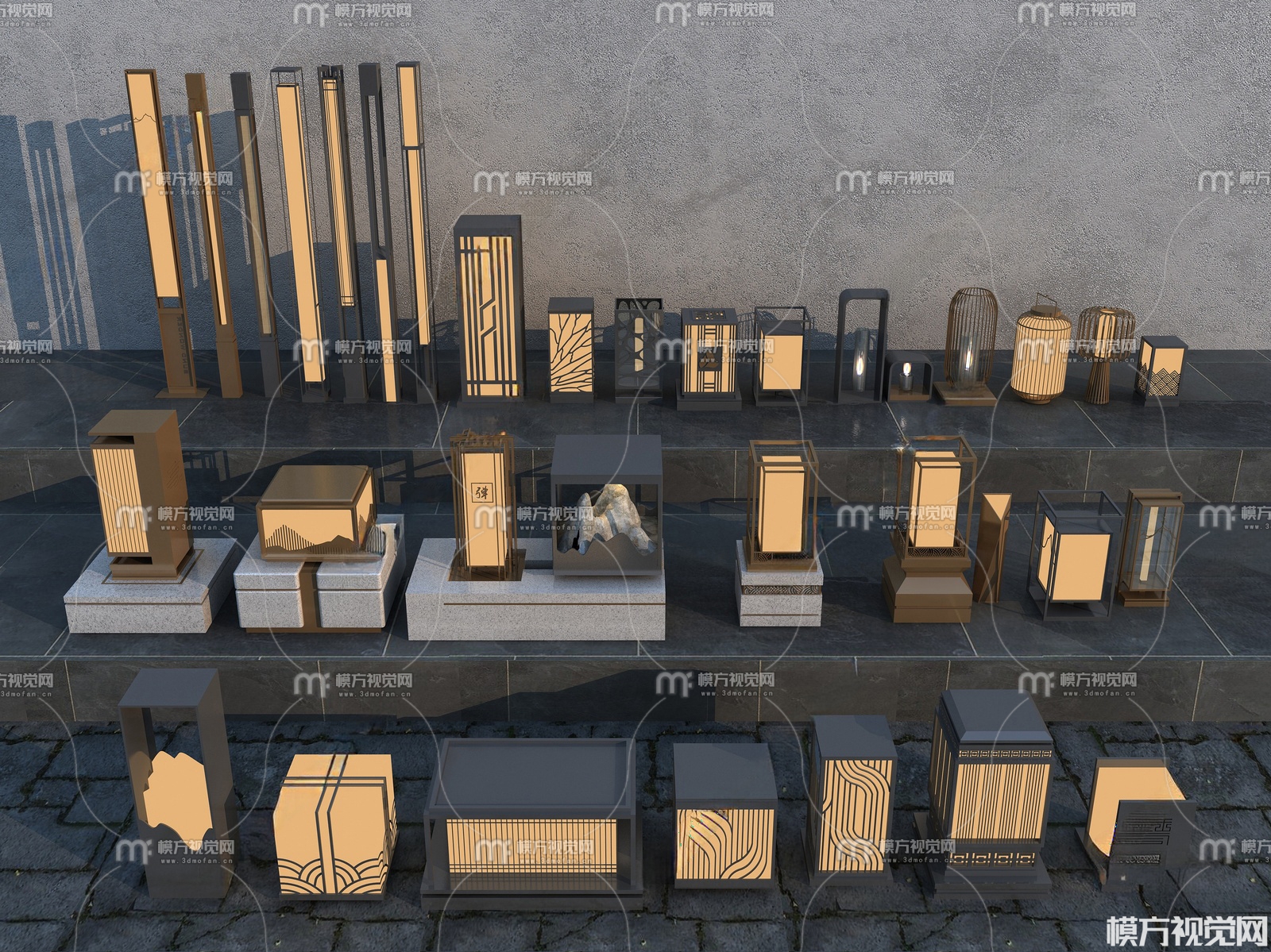 新中式户外灯组合3D模型(ID:0038584)