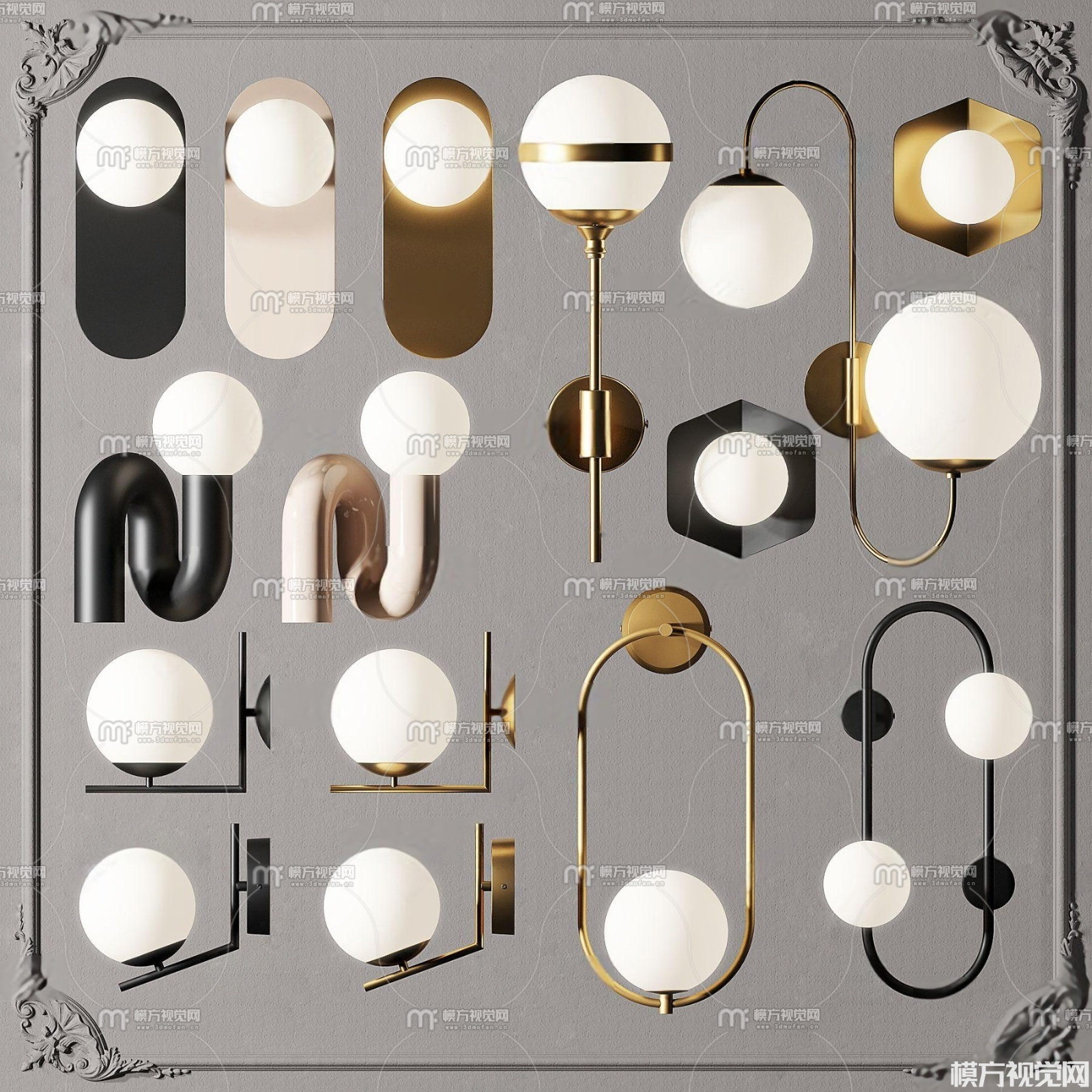 现代金属壁灯组合3D模型(ID:0038591)