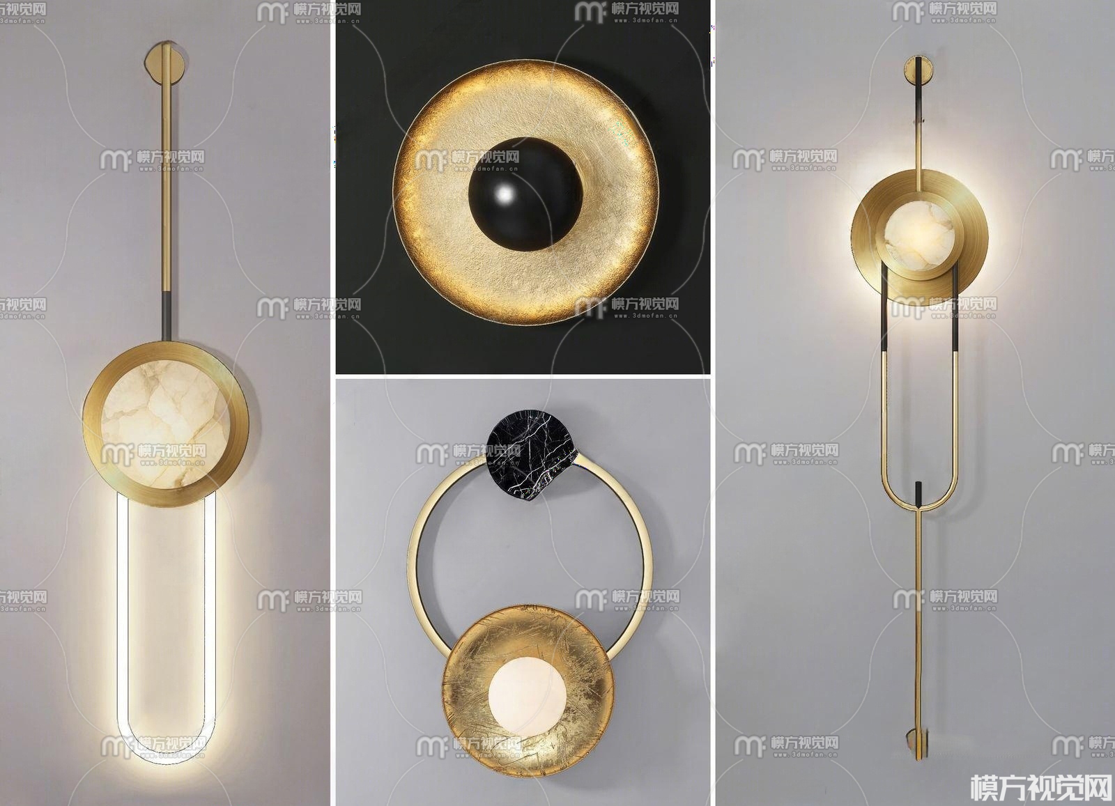 现代金属环形壁灯组合3D模型(ID:0038593)