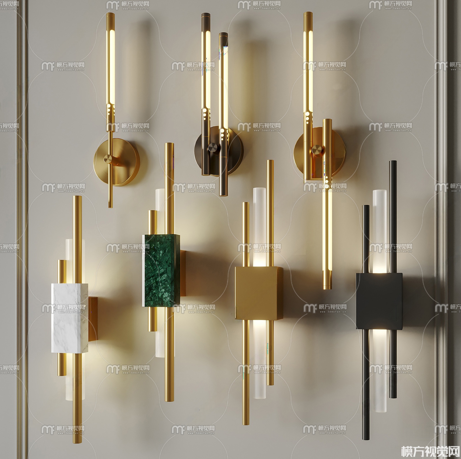 现代轻奢壁灯组合3D模型(ID:0038600)