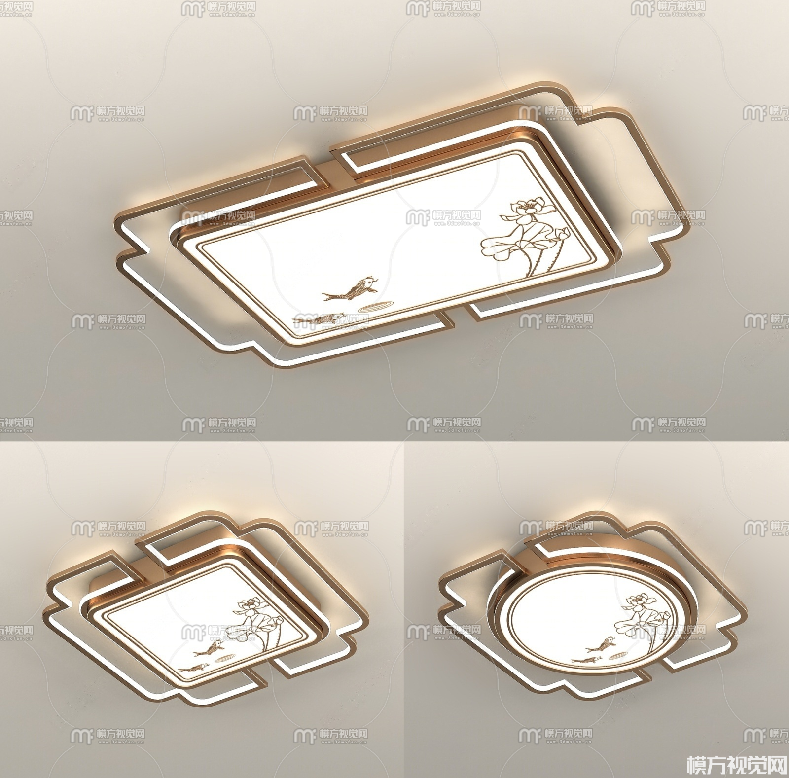 新中式吸顶灯组合3D模型(ID:0038638)