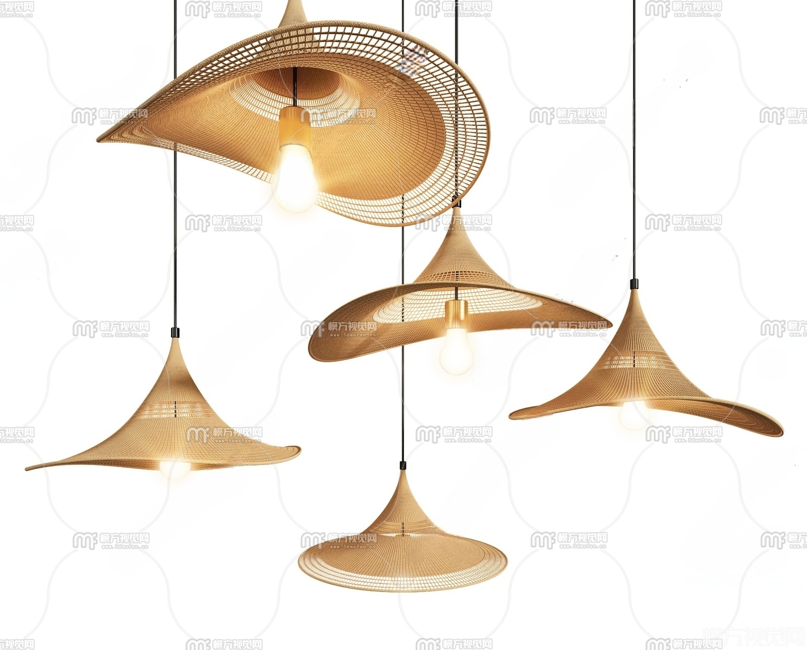 新中式草帽吊灯组合3D模型(ID:0038641)