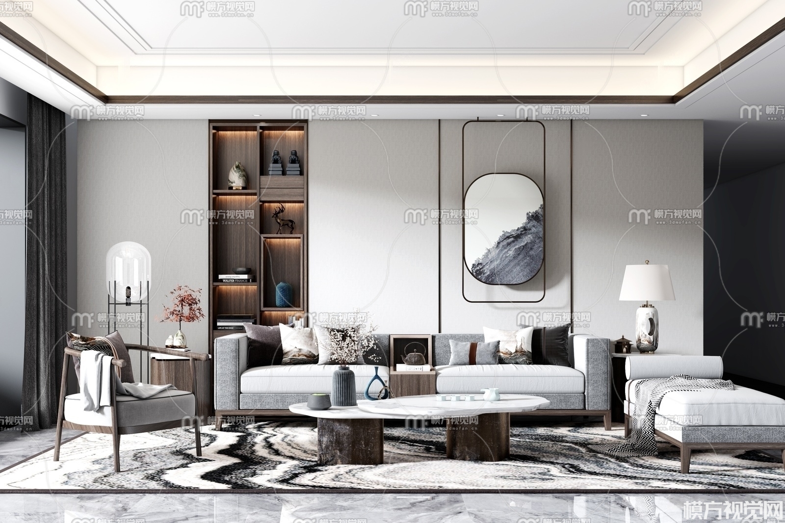 新中式沙发茶几组合3D模型(ID:0003869)