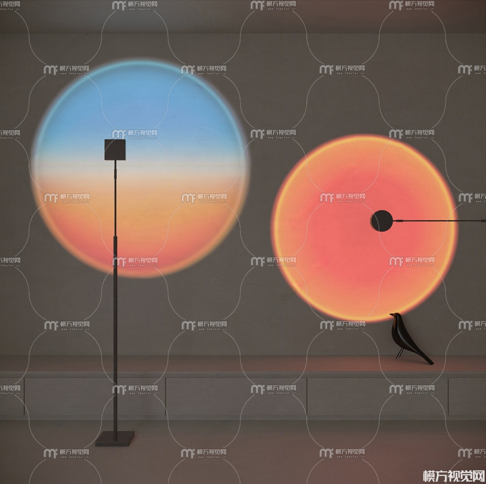 现代落日灯组合3D模型(ID:0038699)