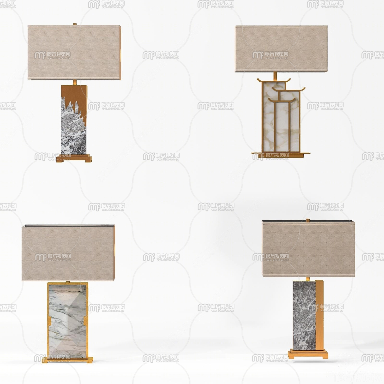 新中式台灯组合3D模型(ID:0038742)