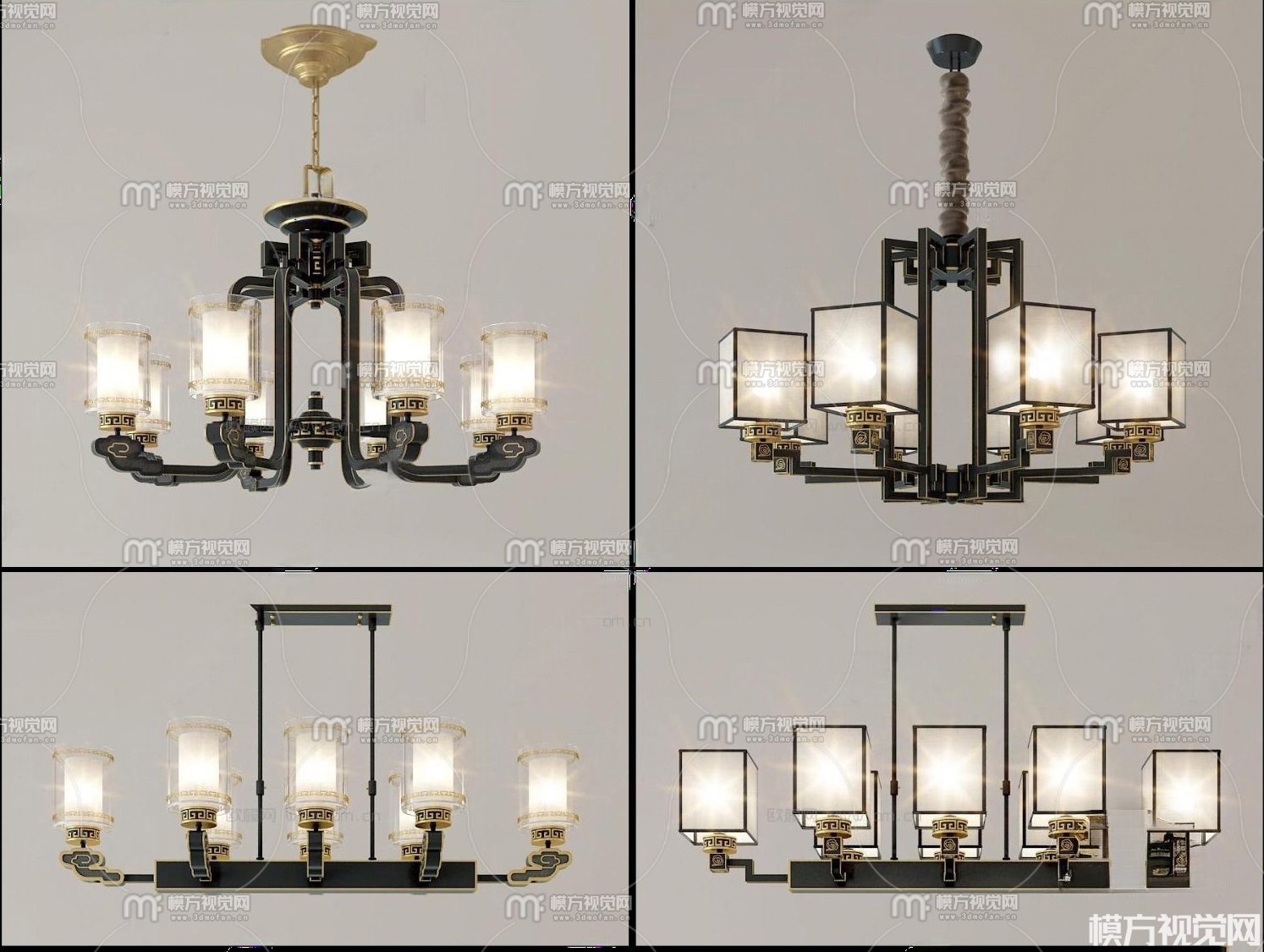 新中式轻奢吊灯组合3D模型(ID:0038762)