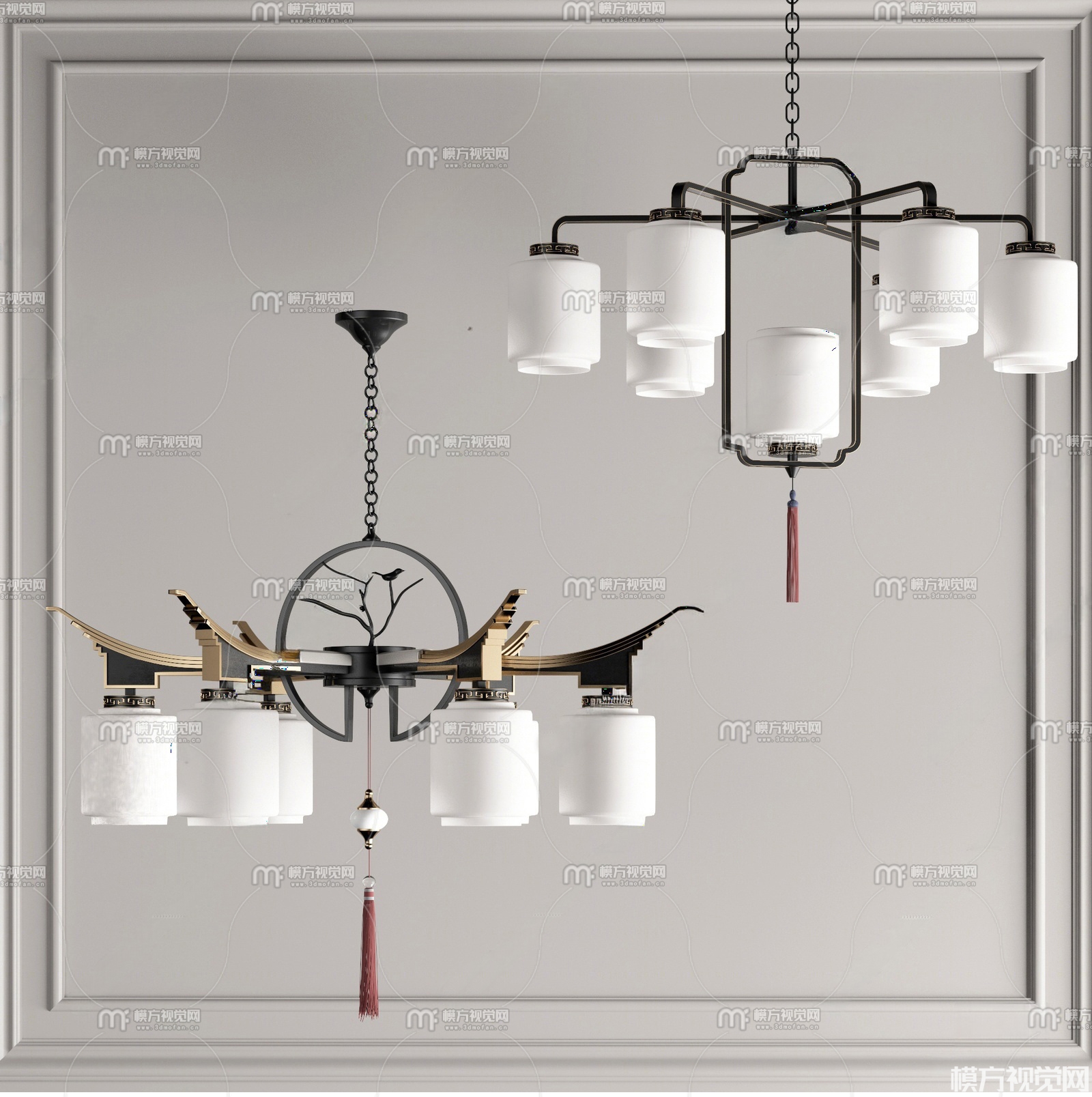 新中式吊灯组合3D模型(ID:0038767)