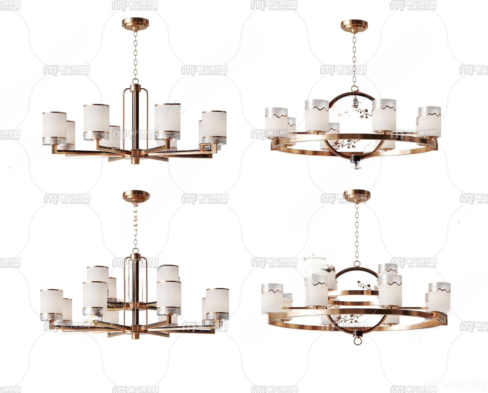 新中式吊灯组合3D模型(ID:0038784)