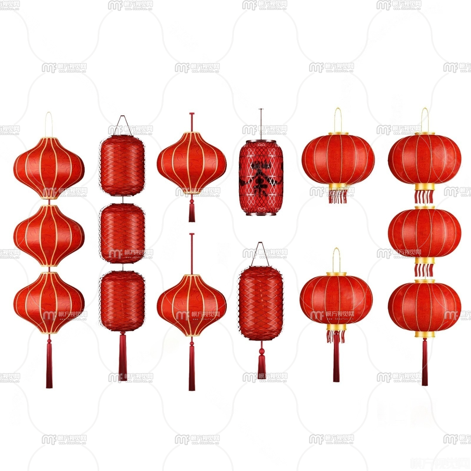新中式红灯笼组合3D模型(ID:0038807)