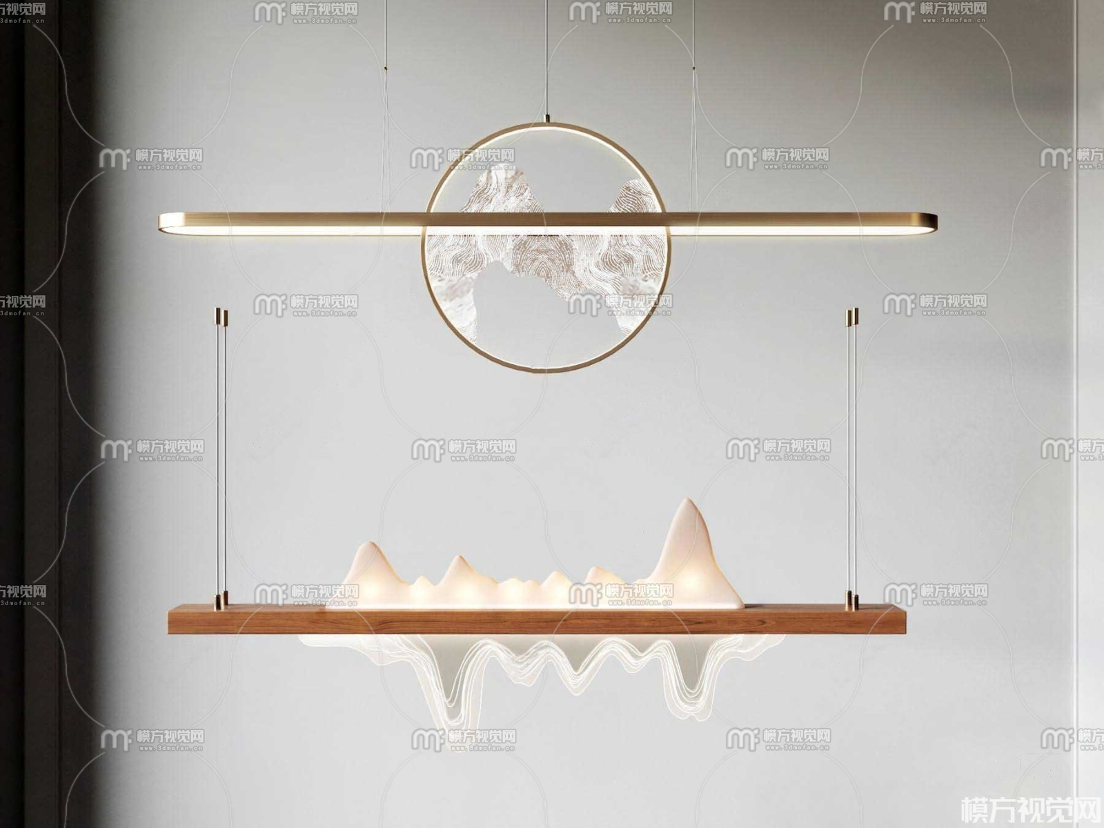 新中式金属禅意吊灯组合3D模型(ID:0038809)