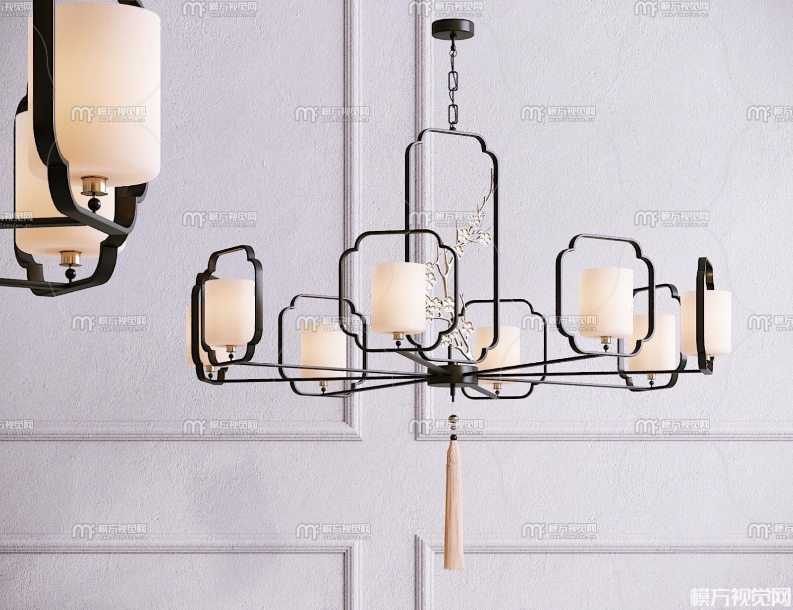 新中式金属多头吊灯3D模型(ID:0038815)