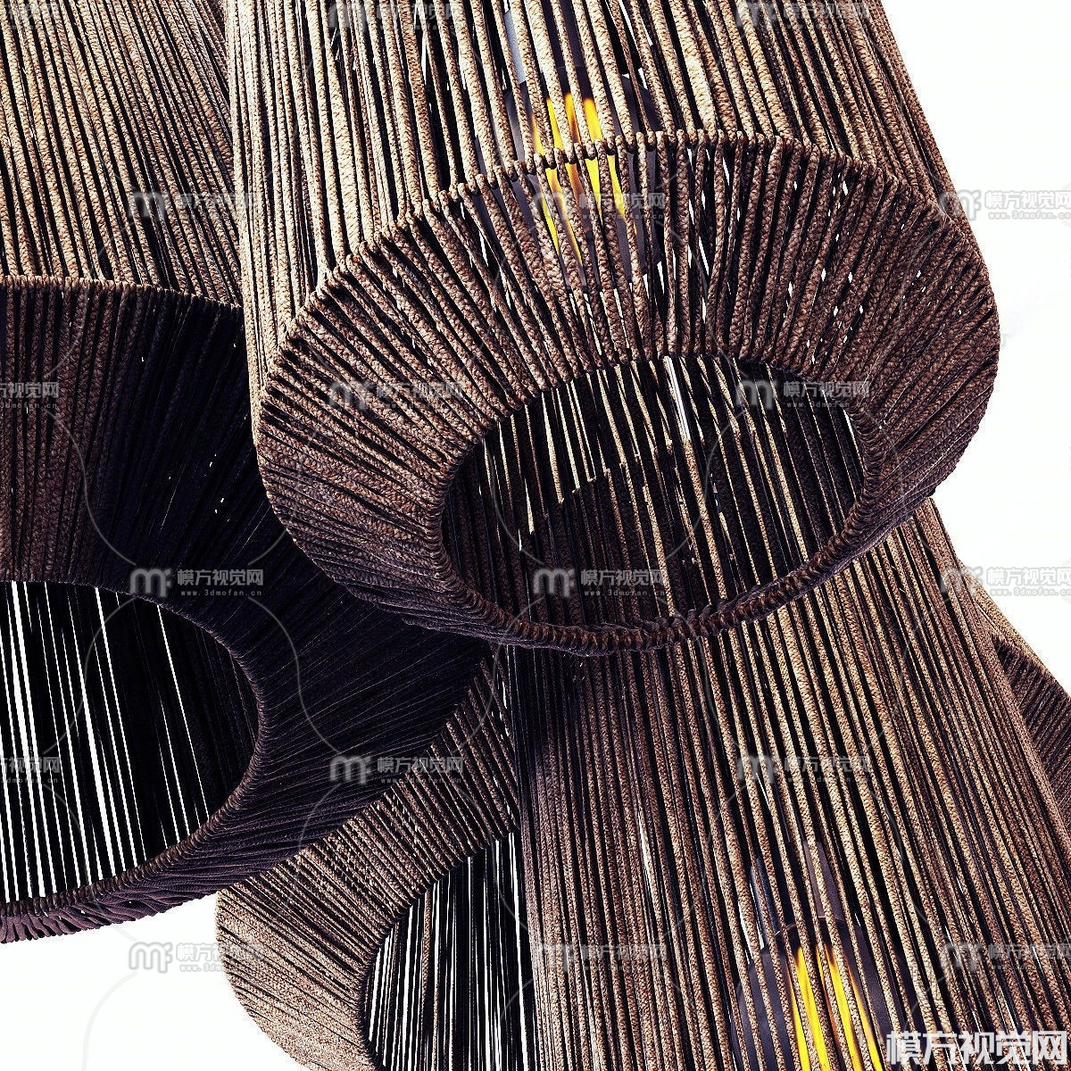 新中式藤编吊灯组合3D模型(ID:0038827)