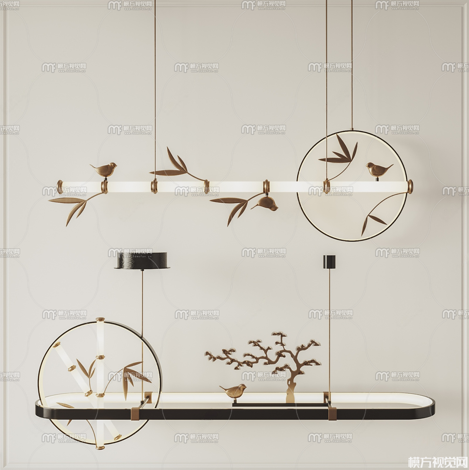 新中式竹子吊灯组合3D模型(ID:0038832)