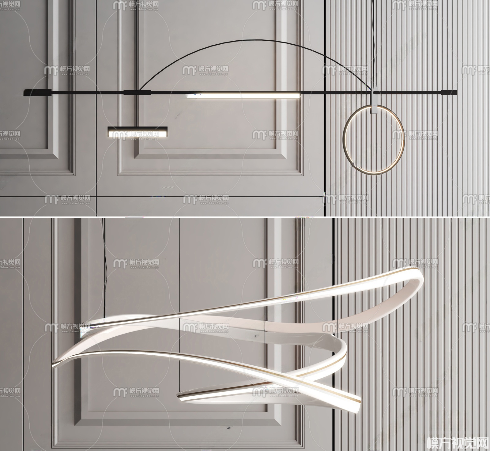现代简约吊灯组合3D模型(ID:0038848)