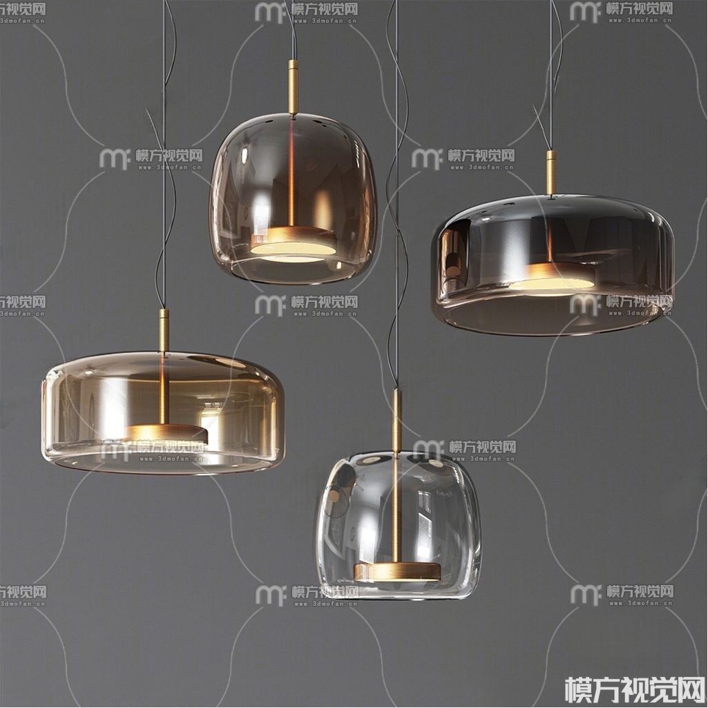 现代金属玻璃吊灯组合3D模型(ID:0038851)