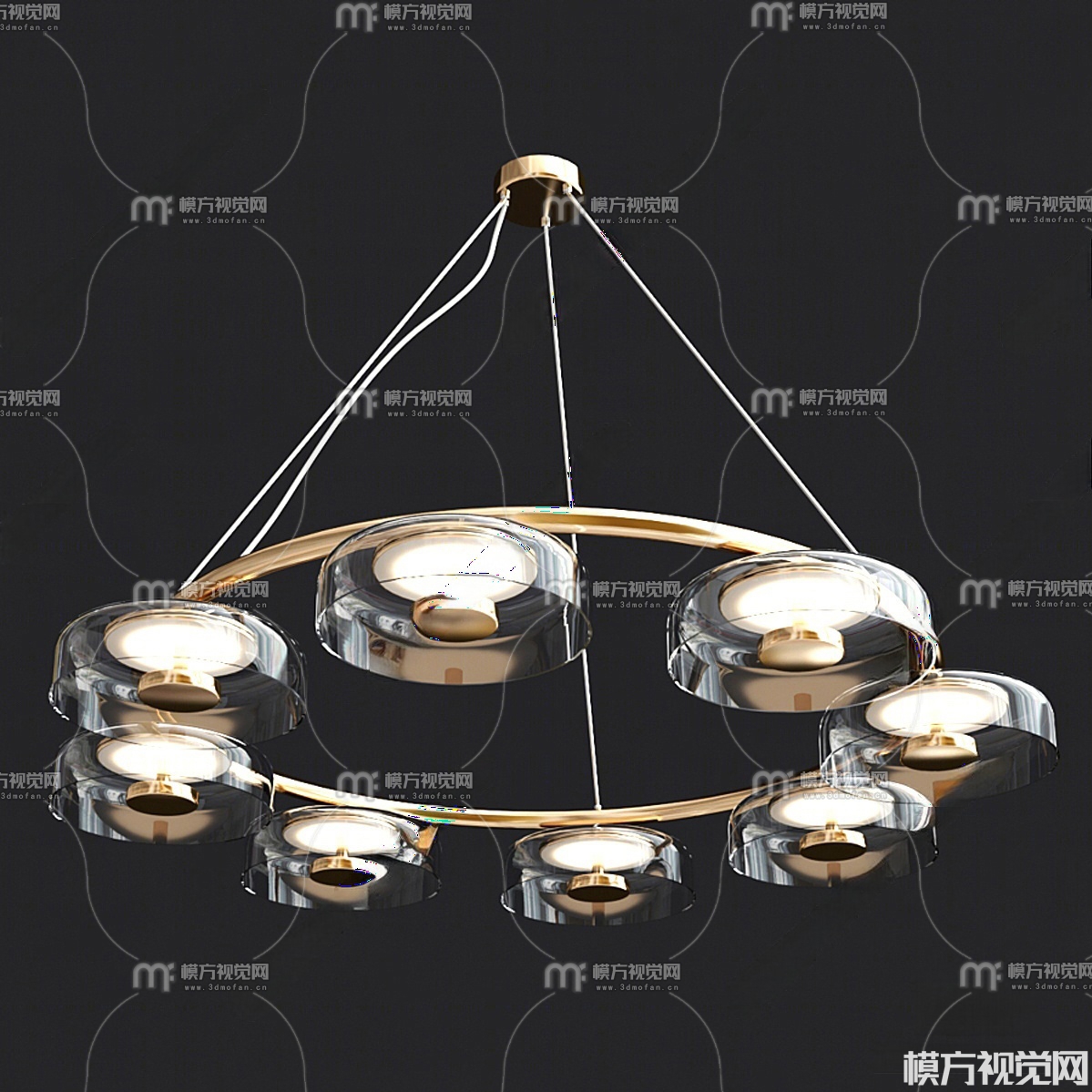 现代金属玻璃吊灯3D模型(ID:0038852)