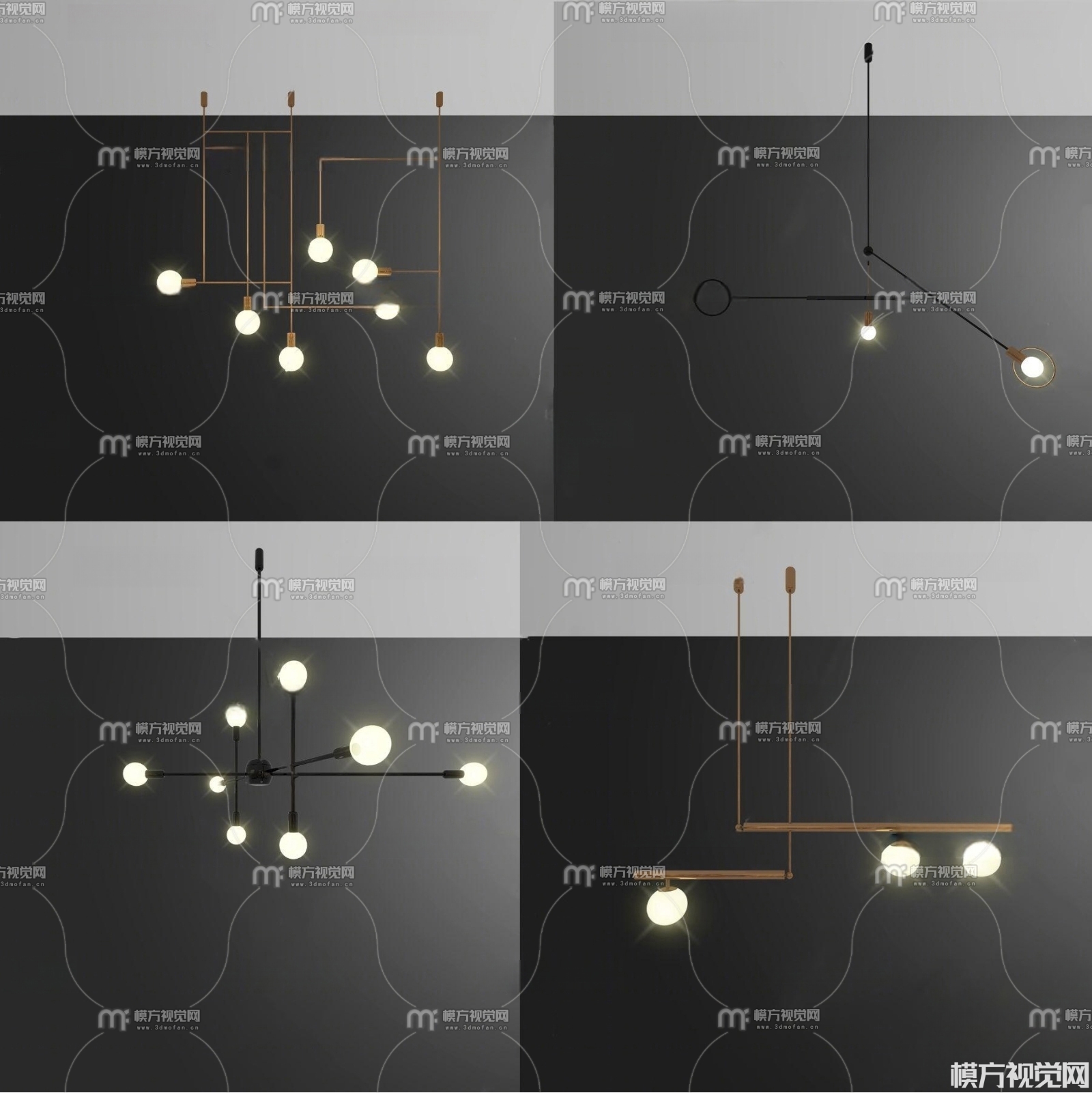 现代金属吊灯组合3D模型(ID:0038854)