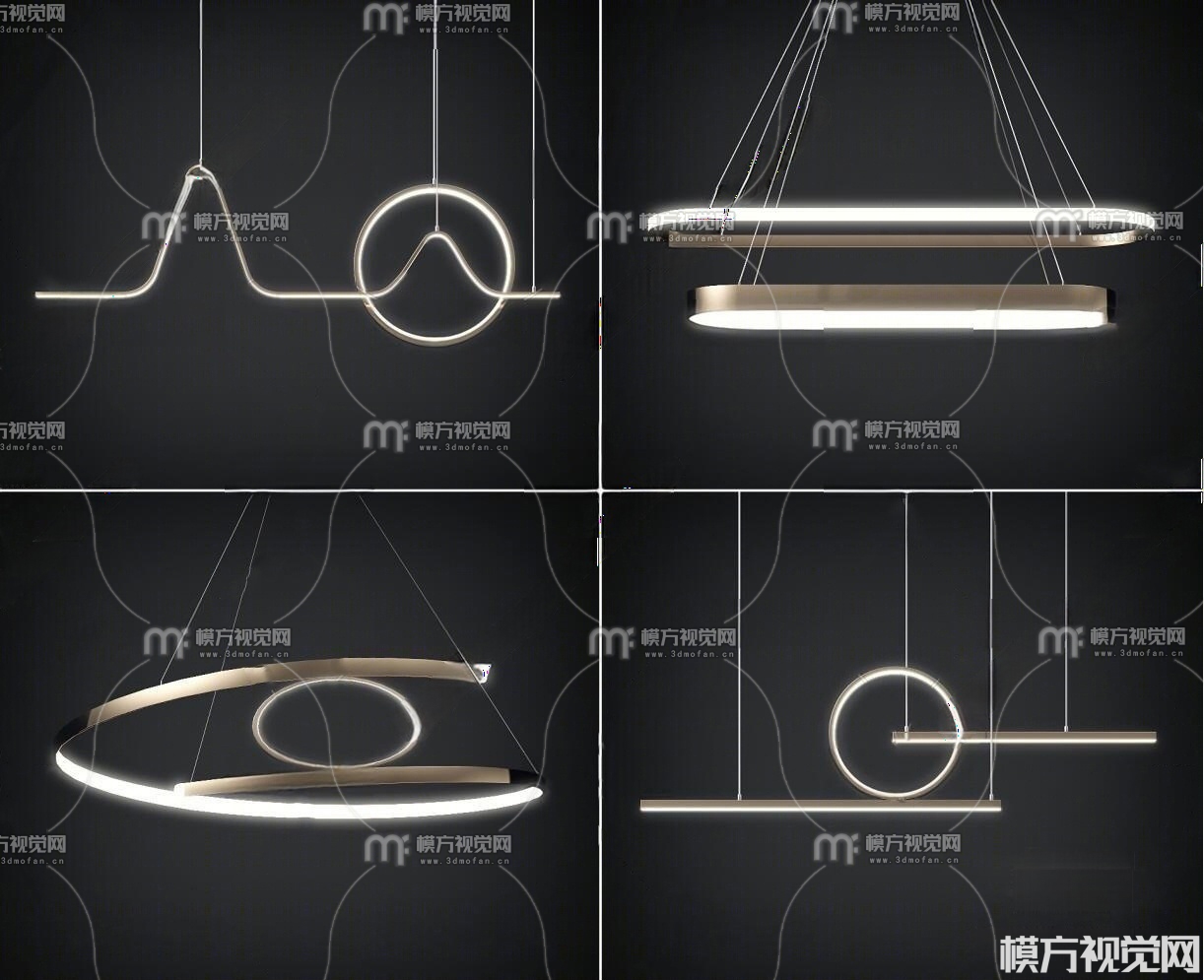 现代金属吊灯组合3D模型(ID:0038862)