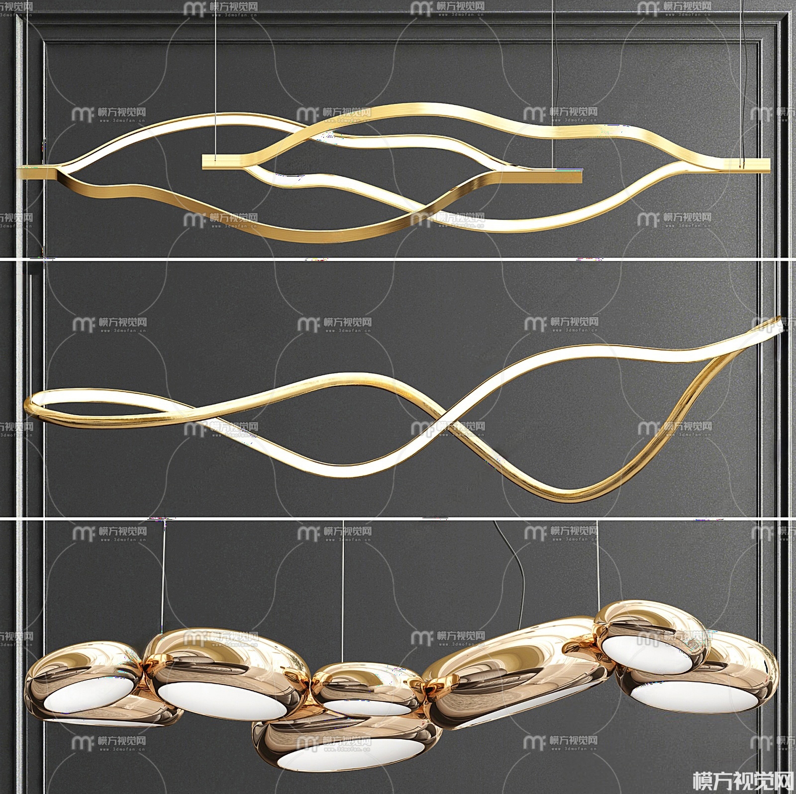 现代金属吊灯组合3D模型(ID:0038865)