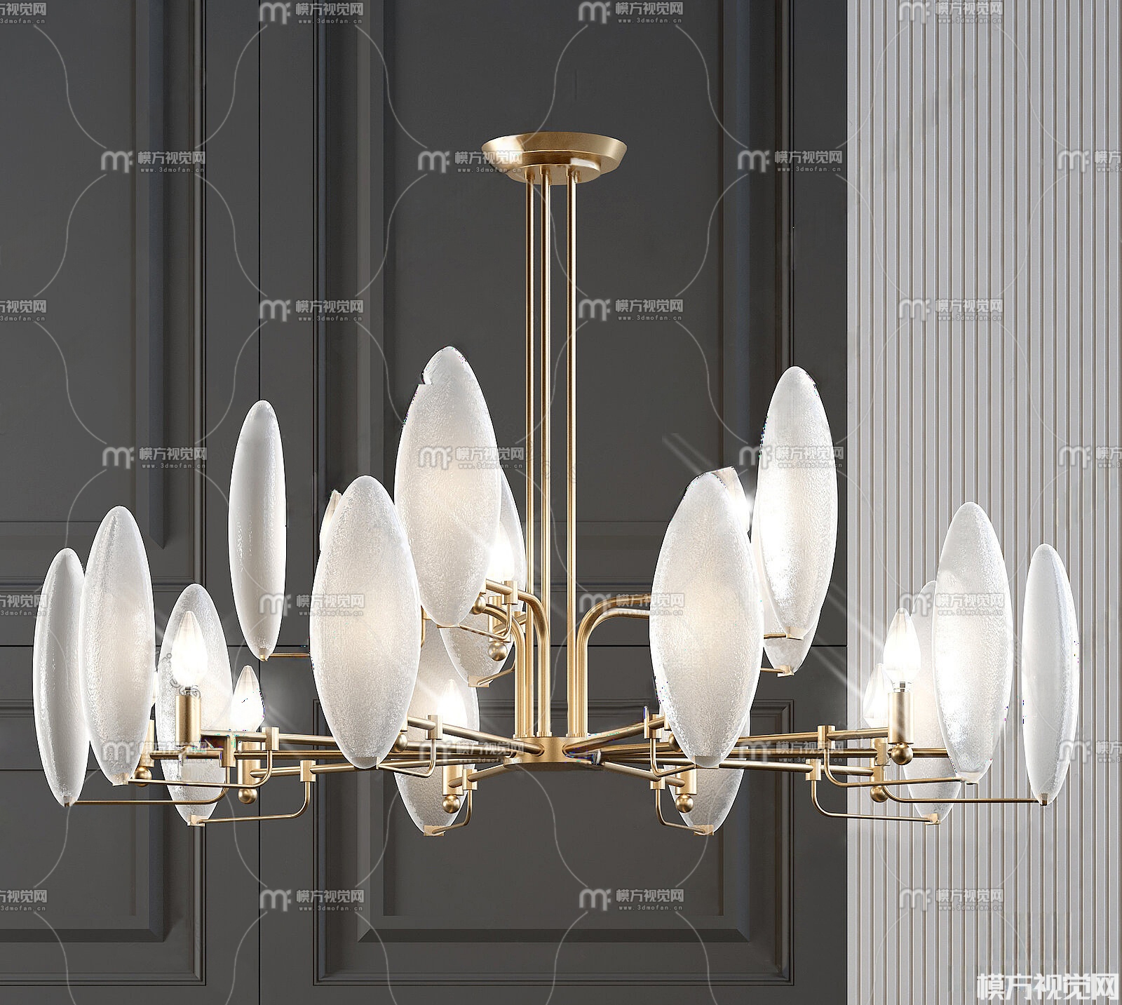 现代金属多头吊灯3D模型(ID:0038867)