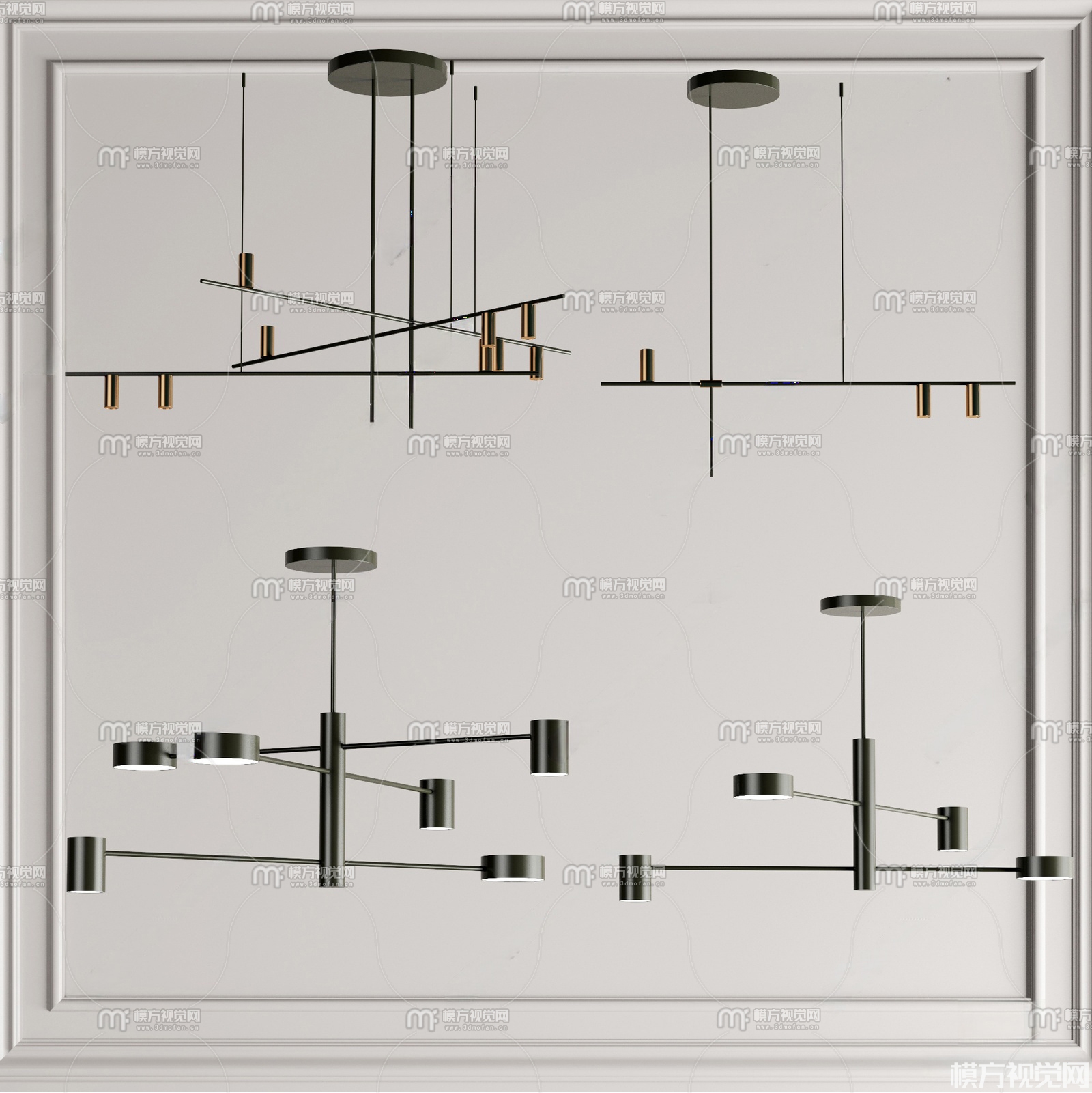 现代金属多头吊灯组合3D模型(ID:0038868)