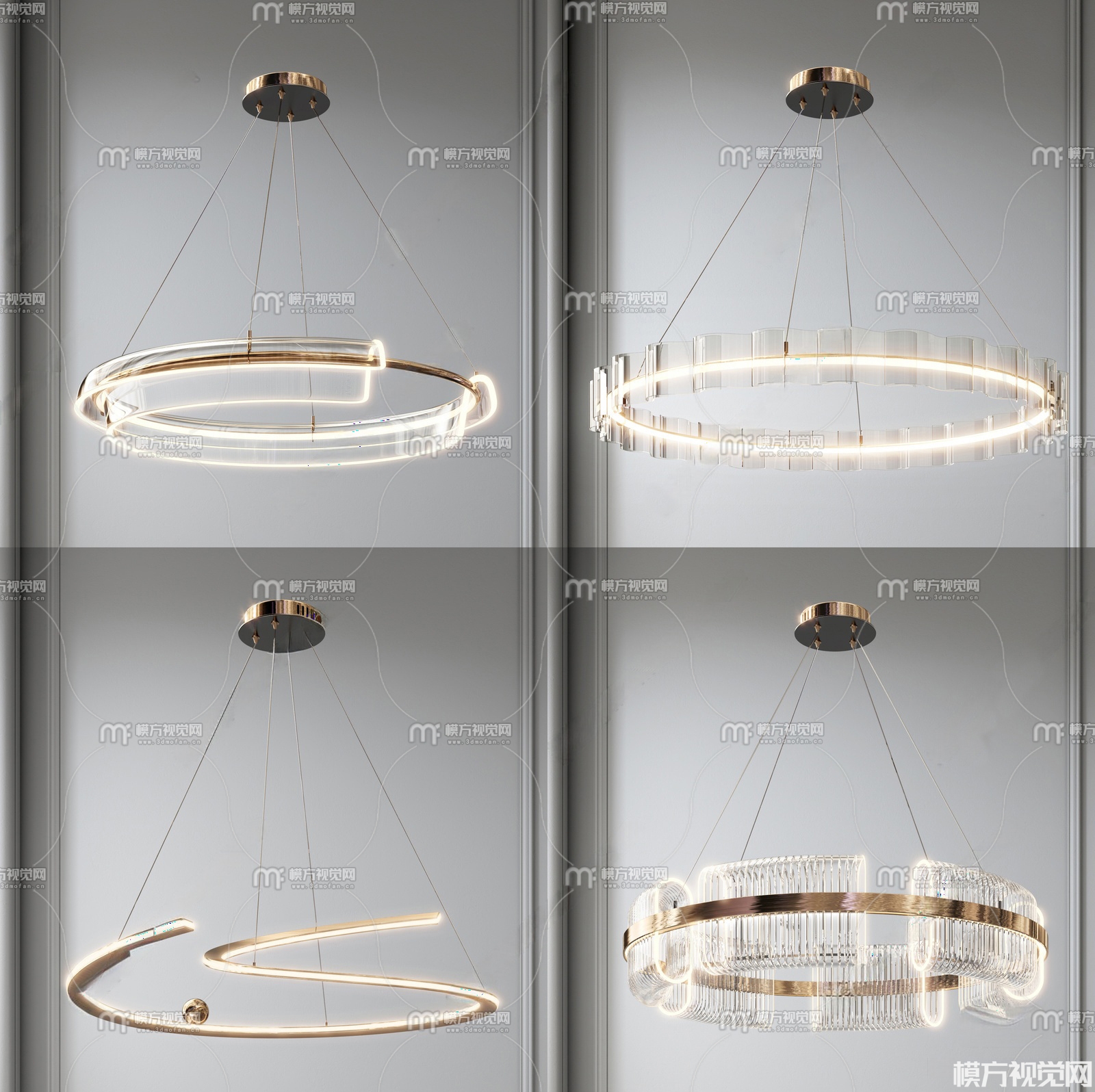现代轻奢环形吊灯组合3D模型(ID:0038888)
