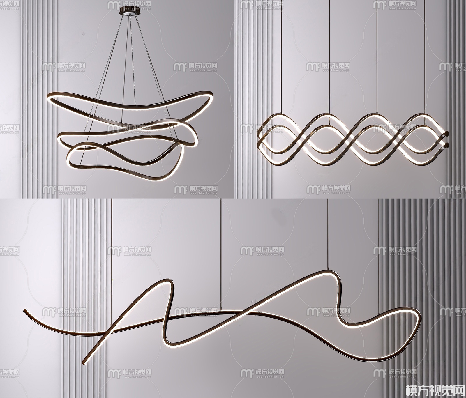 现代轻奢环形吊灯组合3D模型(ID:0038889)