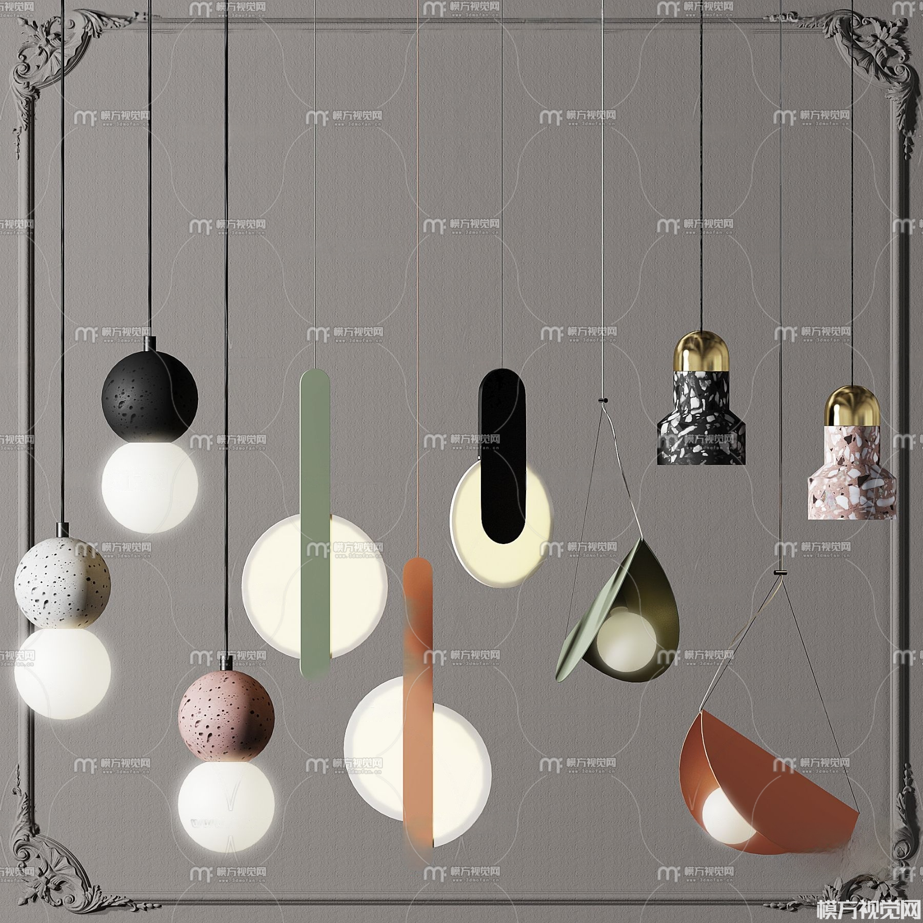 现代时尚小吊灯组合3D模型(ID:0038899)